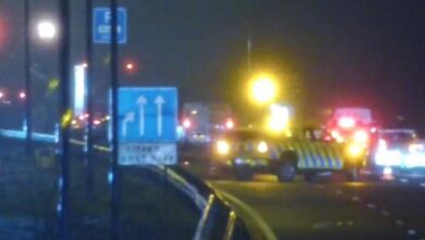 De weg lag bezaaid met brokstukken. De politie heeft het ongeval in onderzoek.