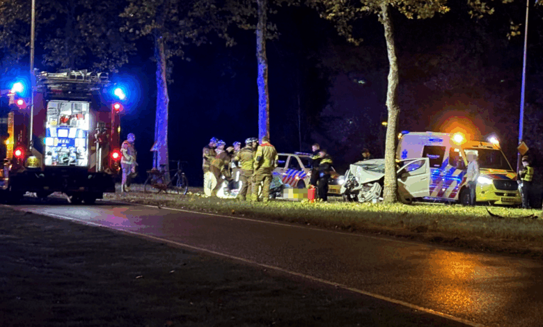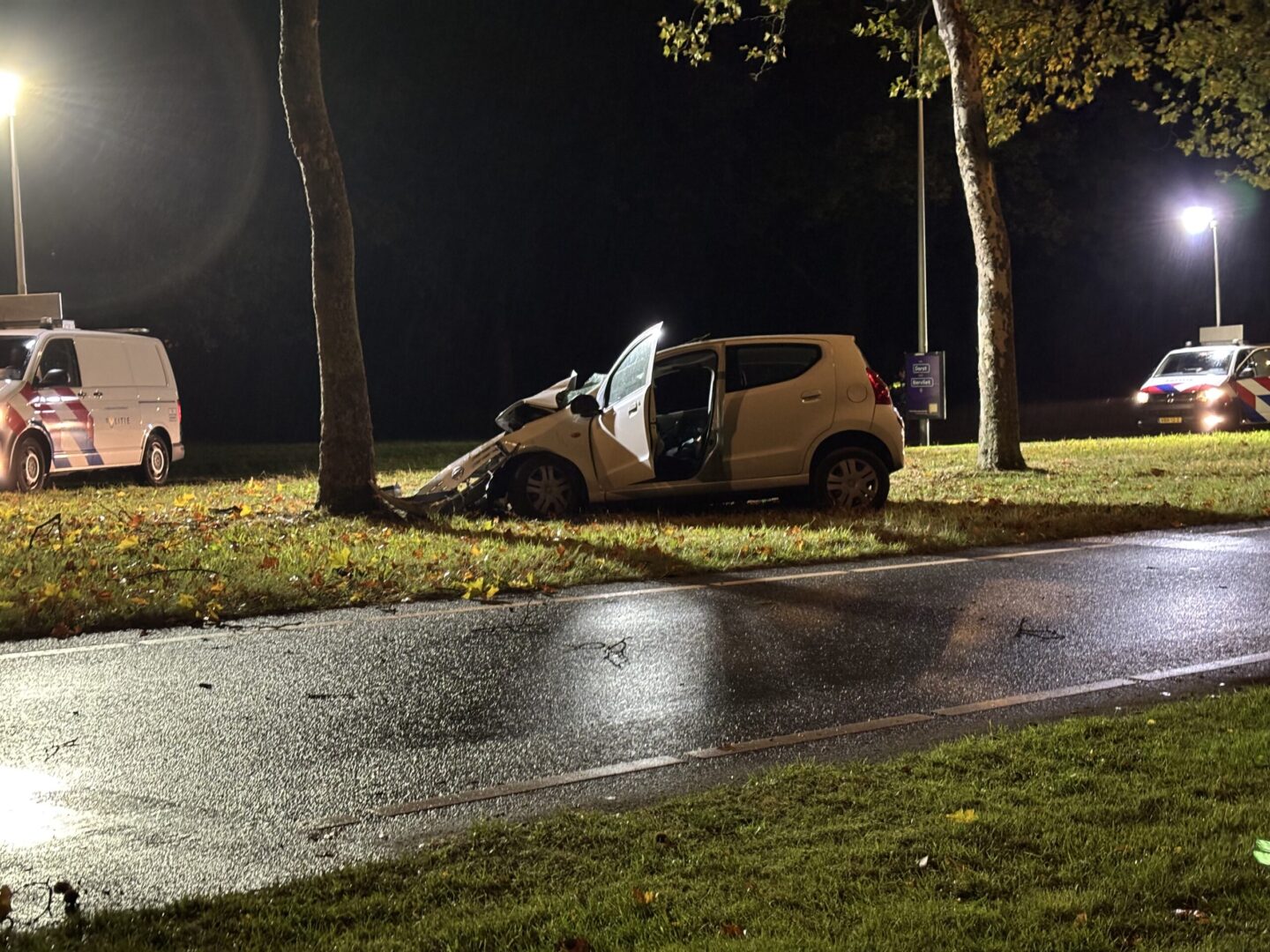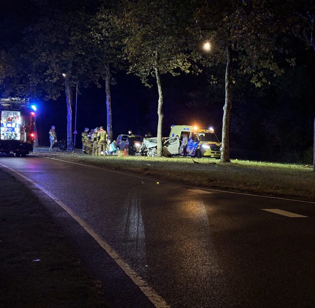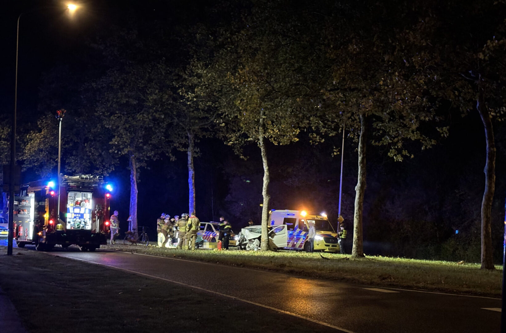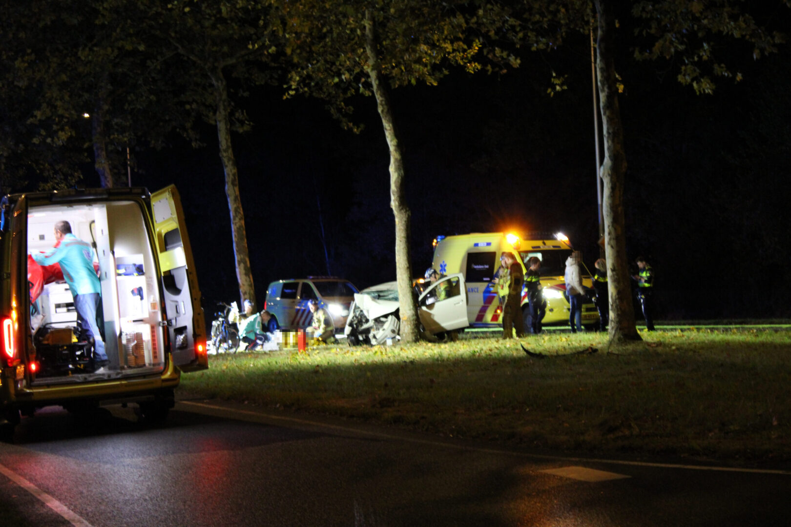 Zware crash tegen boom, twee gewonden met spoed naar ziekenhuis