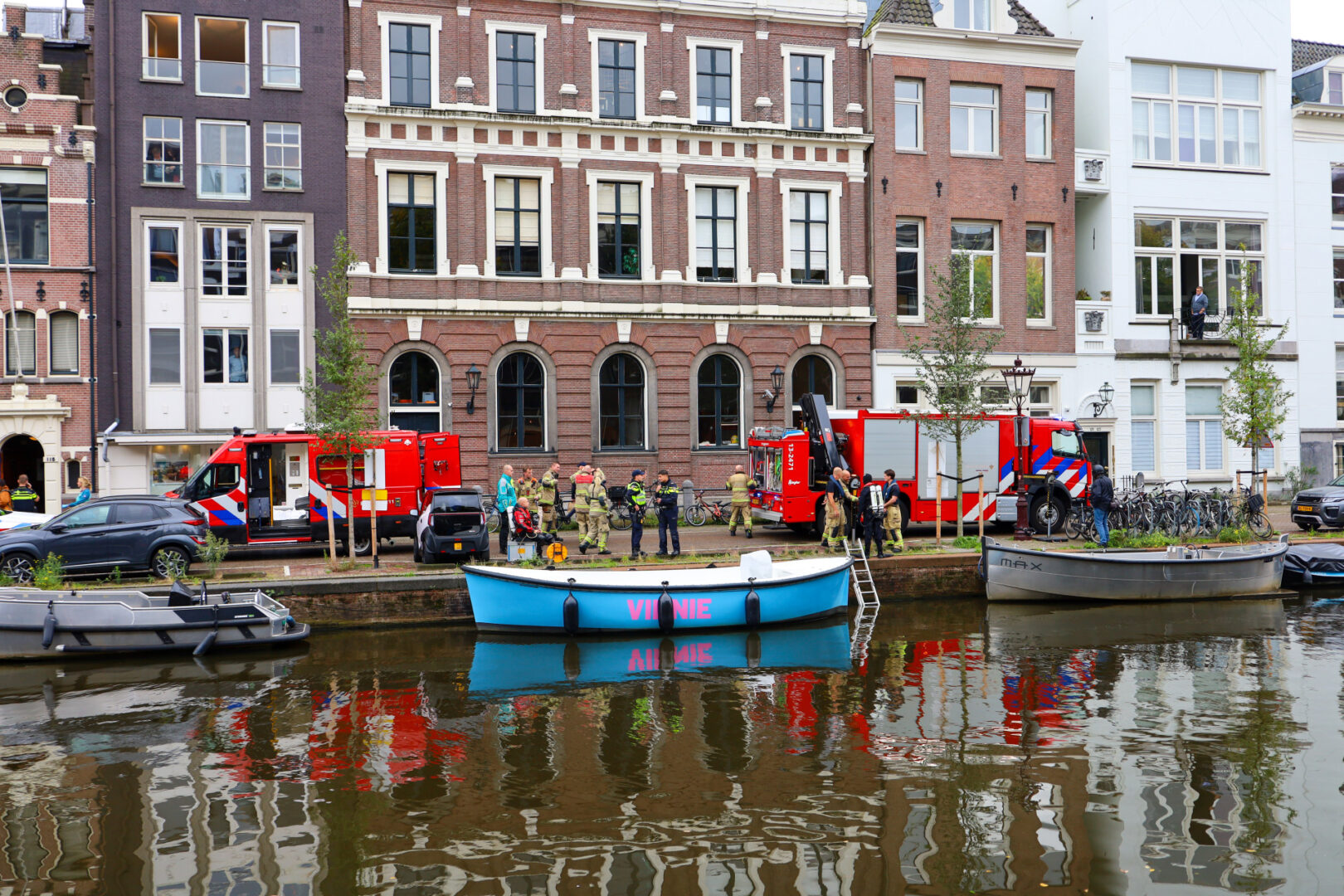 Een moeder is met haar kind vanmiddag gered uit een brommobiel in de Herengracht in Amsterdam. Meerdere omstanders doken het water in om ze te helpen.