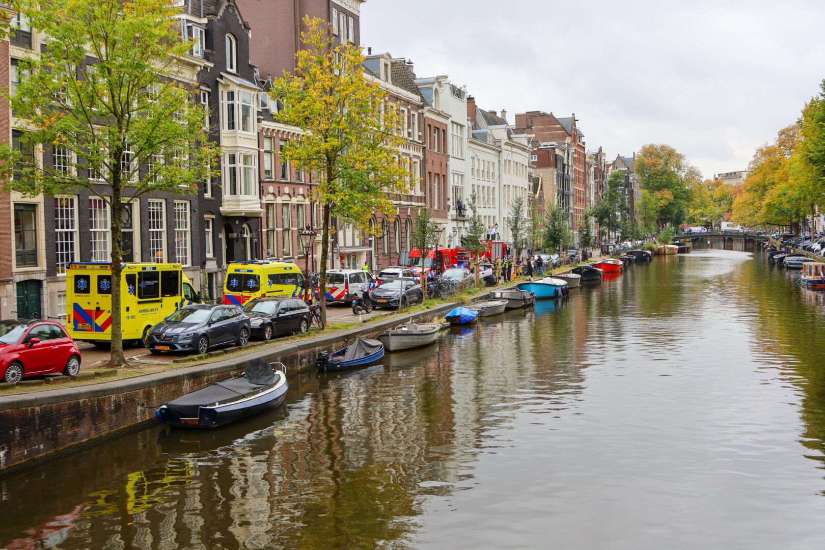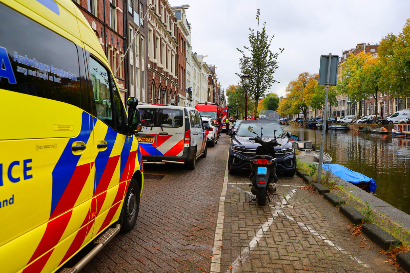 Moeder en kind rijden Herengracht in, omstanders springen het water in