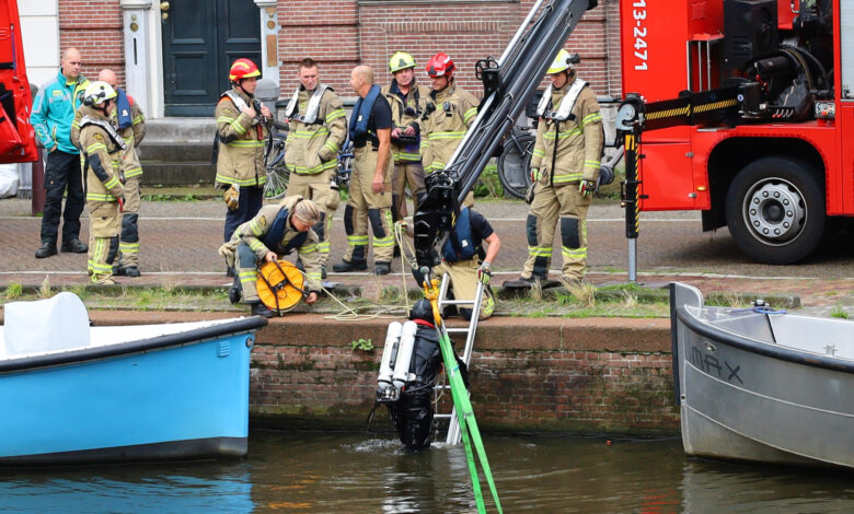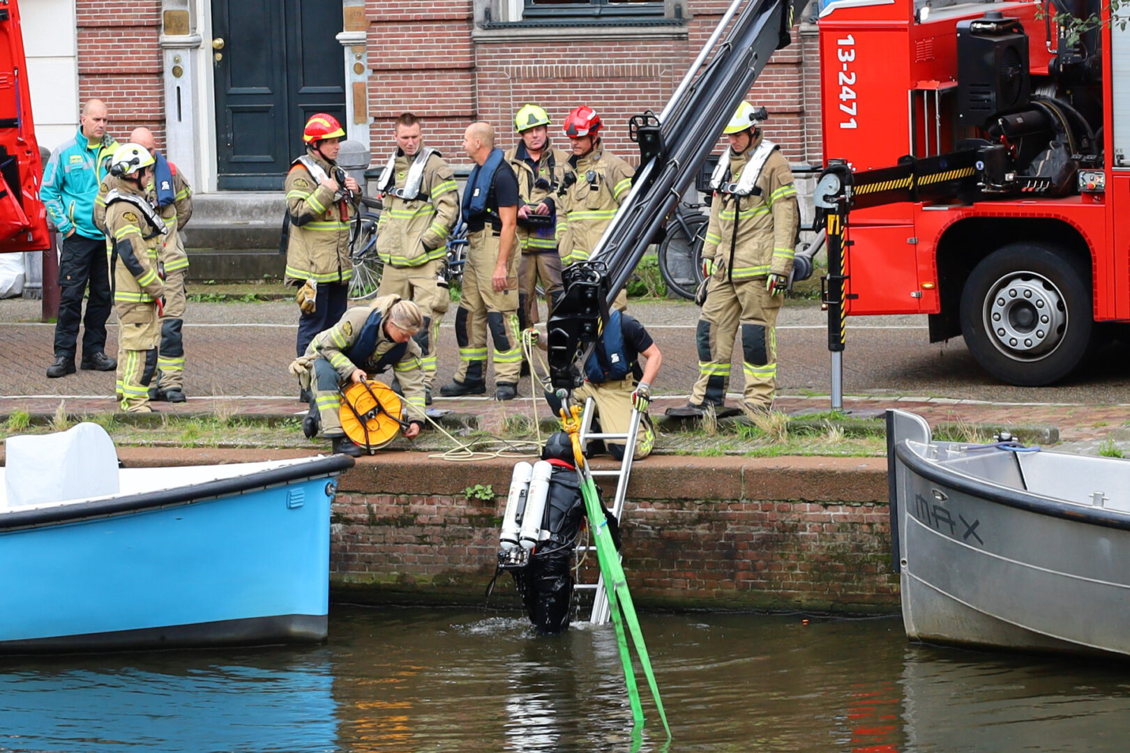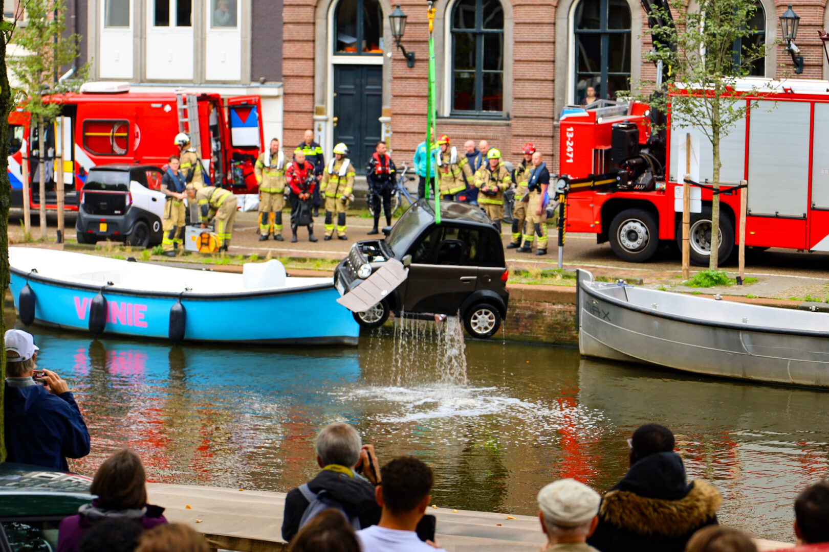 De brandweer heeft met een kraan het voertuig uit het water gehaald. Het ongeval trok veel bekijks.