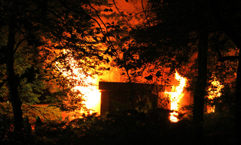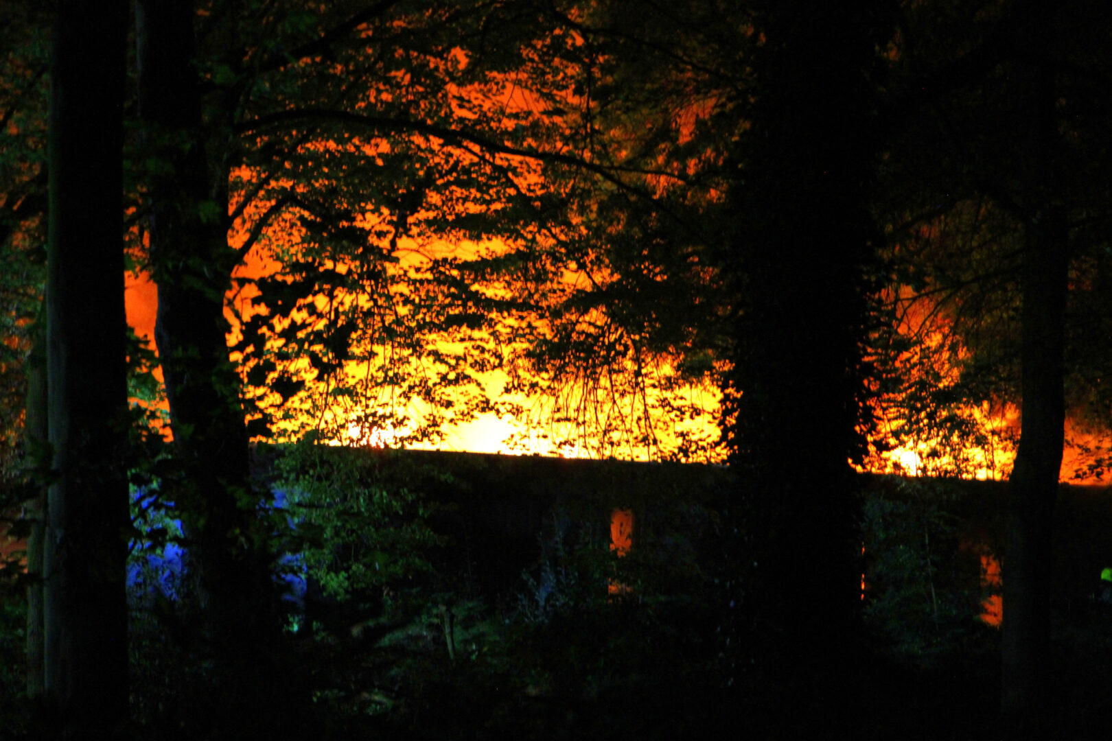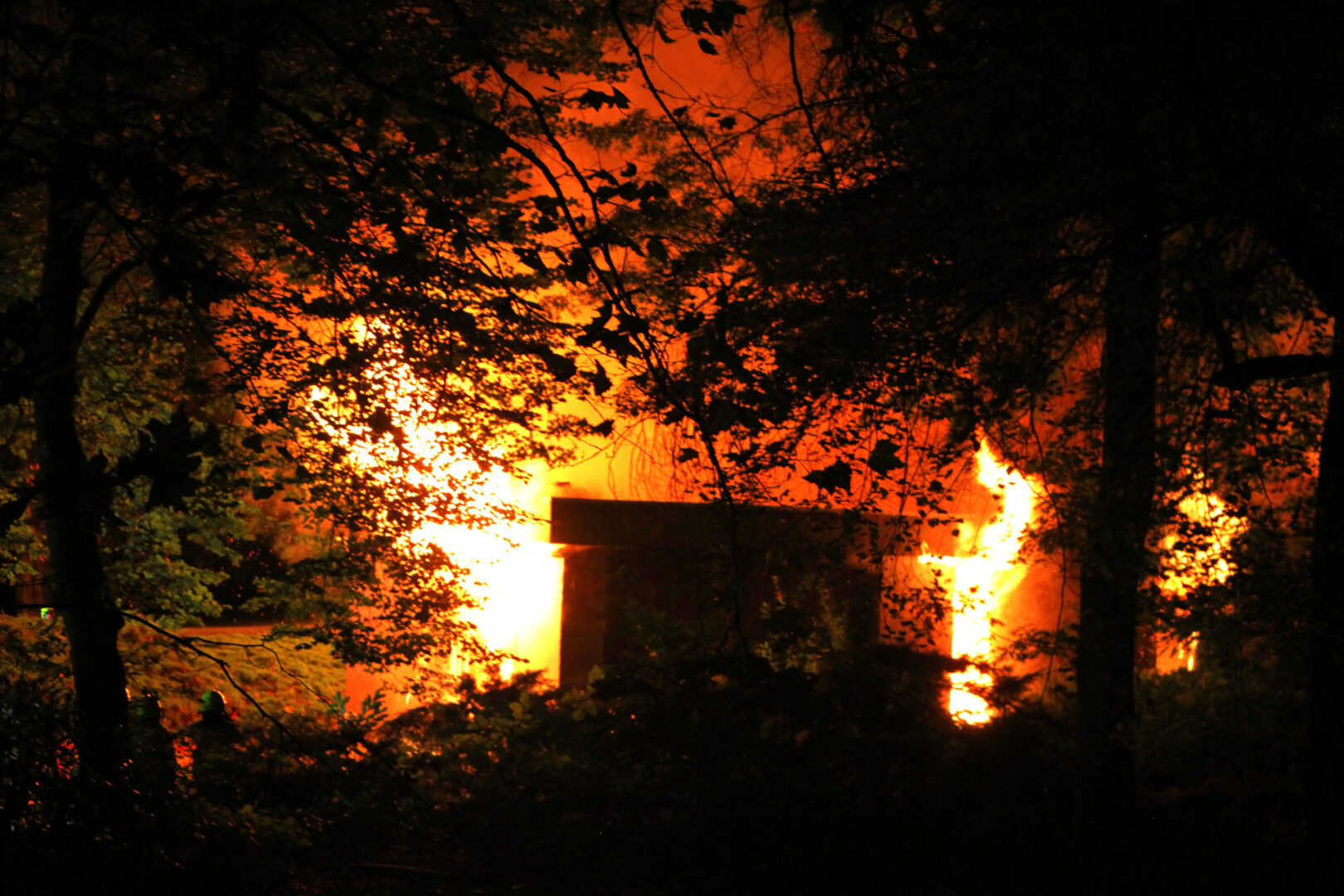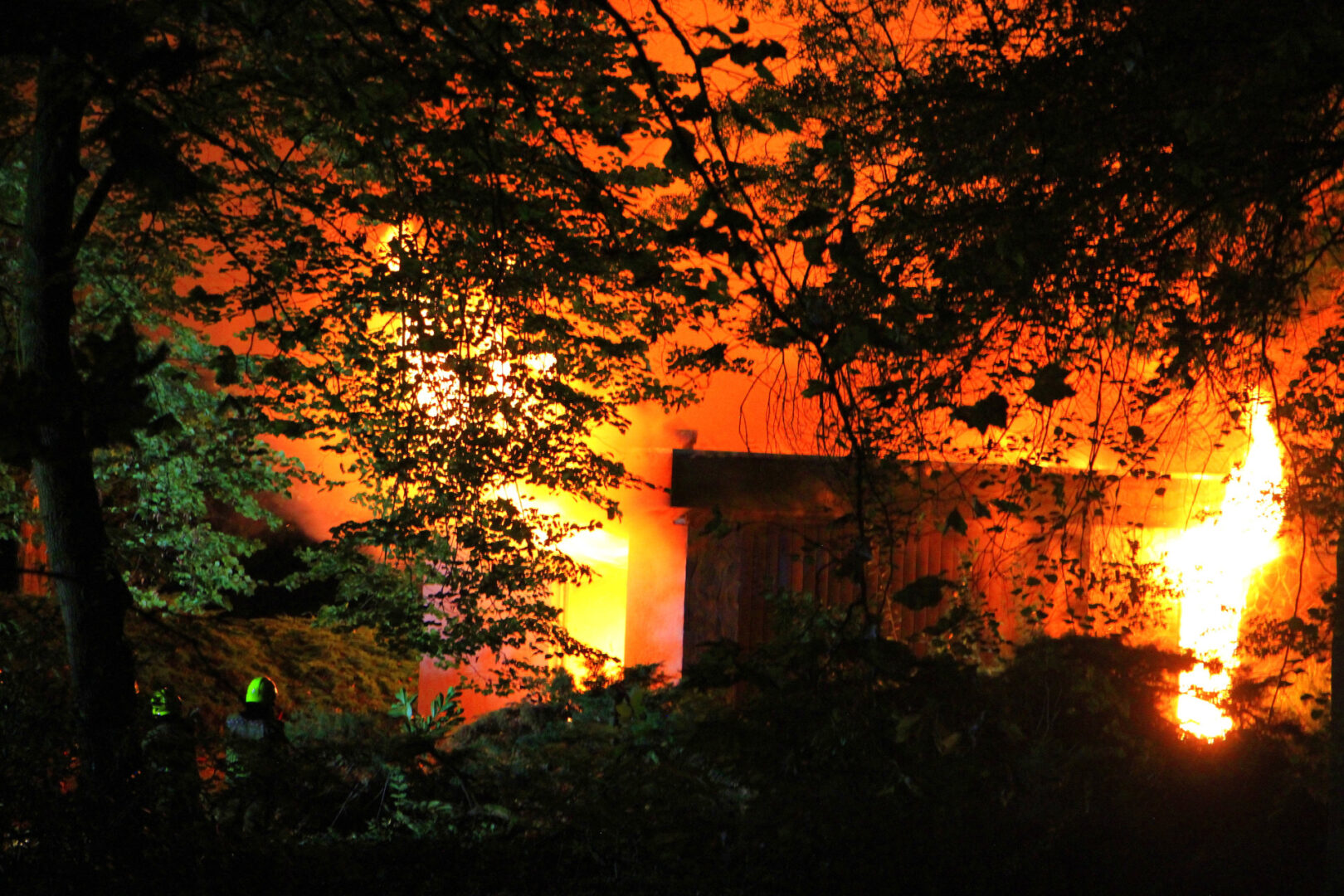 Bij aankomst van de brandweer bleek de brand al volledig om zich heen te grijpen. Vanwege de hevigheid werd het sein ‘grote brand’ gegeven en werden meerdere bluswagens en waterwagens ingezet. Het gebouw, dat omringd is door dichtbegroeide stukken terrein, kon niet meer worden gered.