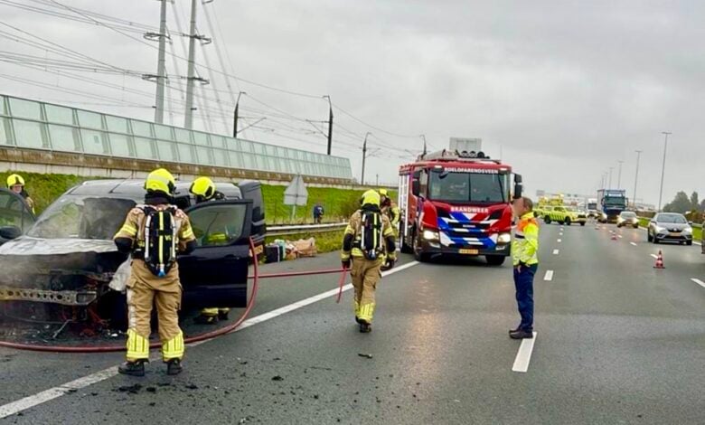 Op de A4 bij Hoogmade is woensdagochtend een bestelauto in brand gevlogen. Door de brand moesten twee rijstroken worden afgesloten.