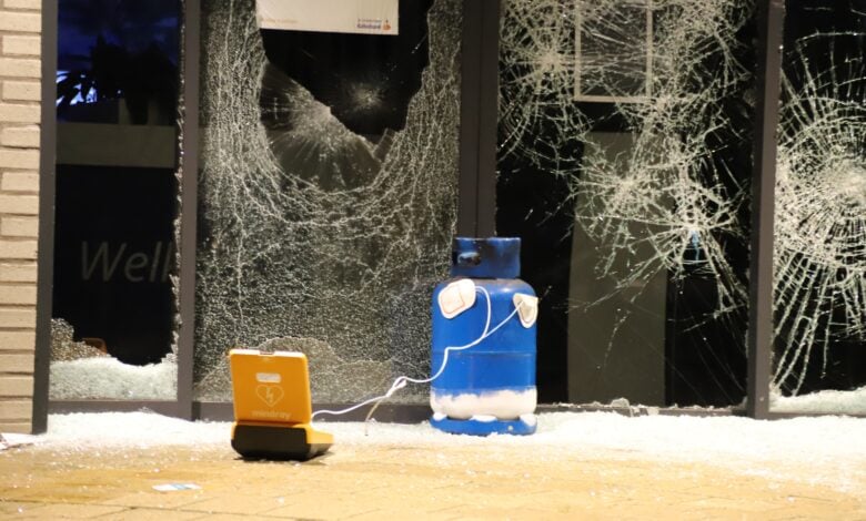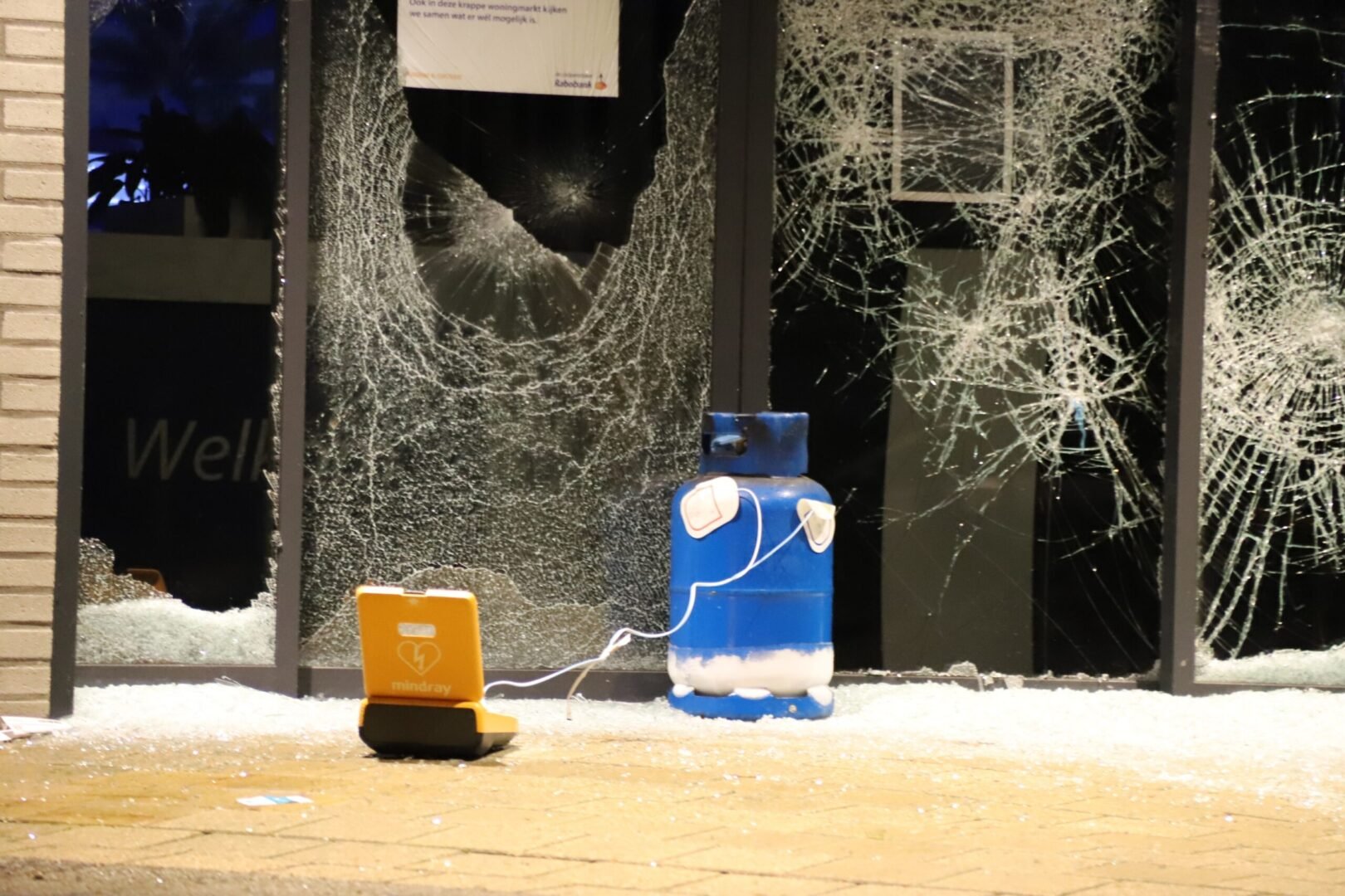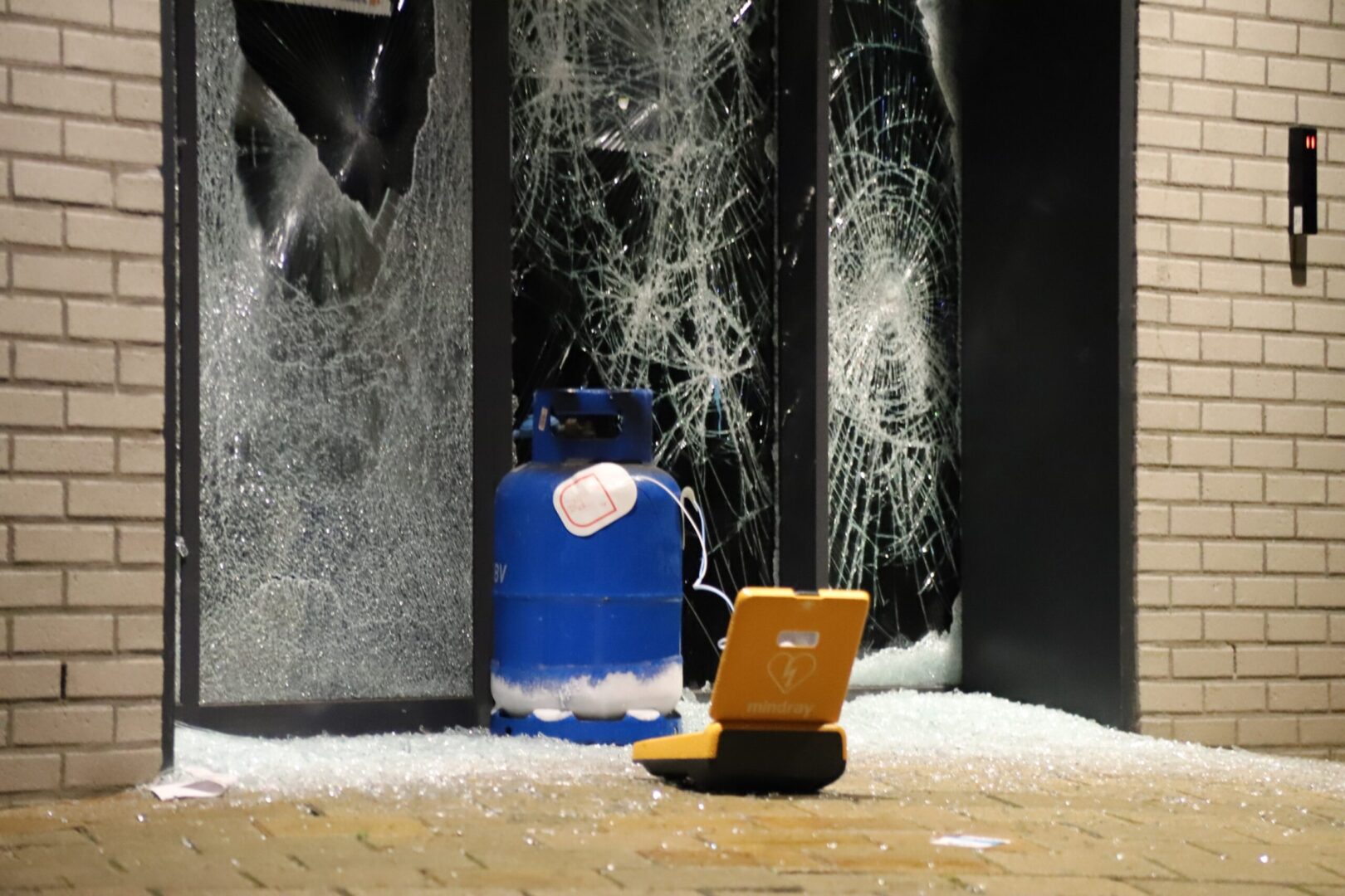 Dreigende situatie bij winkelcentrum, ruiten ingegooid en gasfles voor pand geplaatst