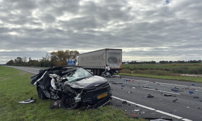 Snelweg dicht na zwaar ongeval tussen auto en vrachtwagen