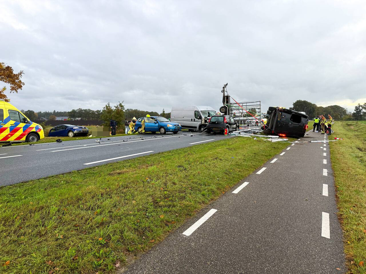 Op de N348 (Raalterweg) bij Wesepe heeft donderdagochtend een ernstig ongeval plaatsgevonden waarbij meerdere mensen gewond zijn geraakt. In totaal waren vijf voertuigen en een aanhanger met glas bij de botsing betrokken.