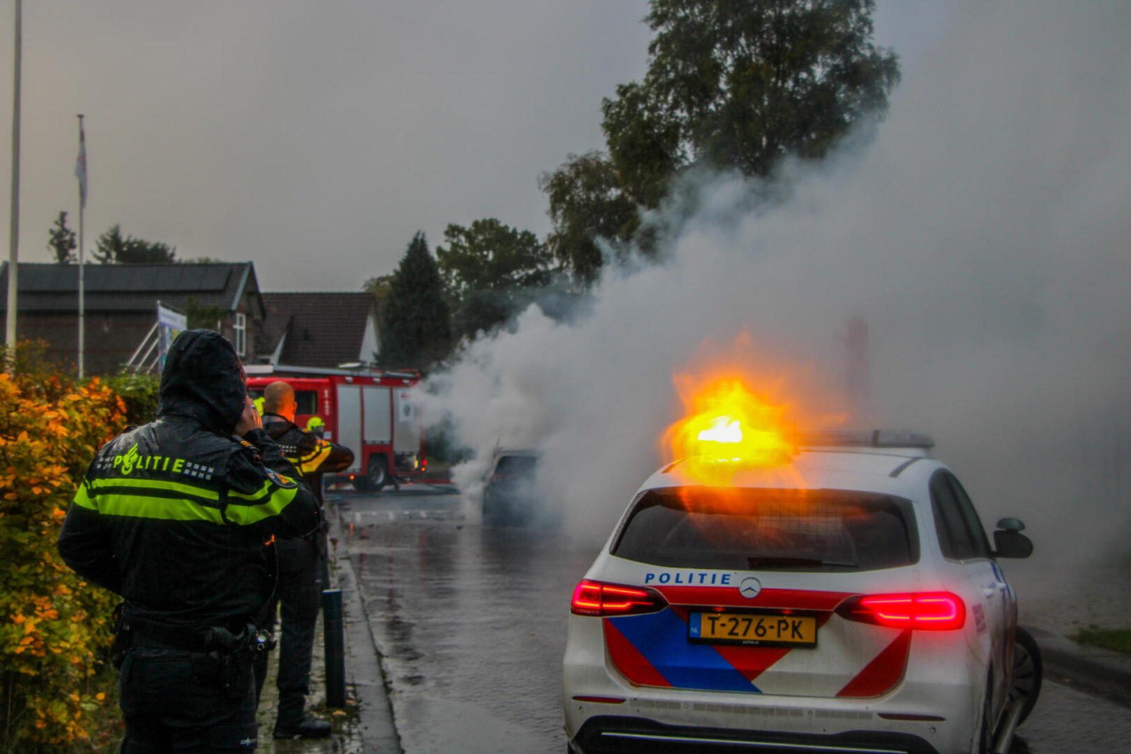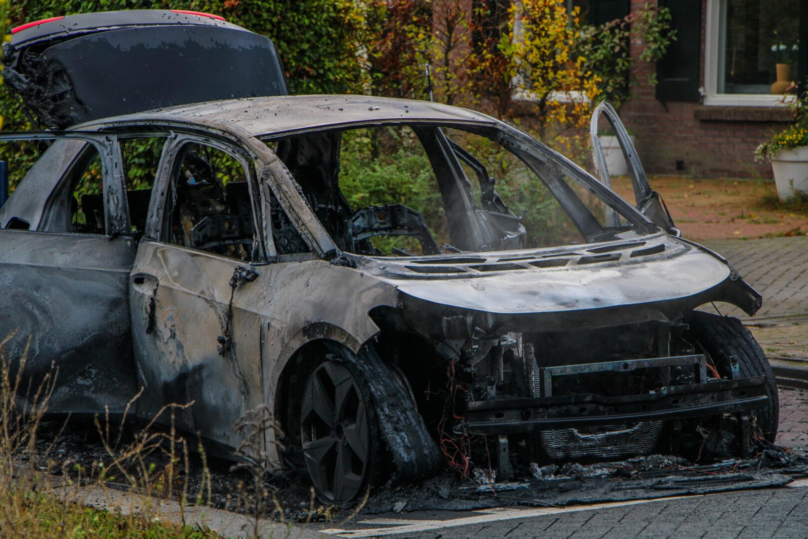 De brand zou zijn ontstaan in het accupakket van de auto. Aan de linkerkant van het voertuig werd een volledig uitgebrande kinderwagen aangetroffen. Nadat de brandweer het vuur onder controle had, volgde een kleine knal waarna het voertuig opnieuw begon te roken. In totaal werden drie brandweervoertuigen ingezet. De brand ging gepaard met veel rookontwikkeling die in de weide omtrek te zien was.