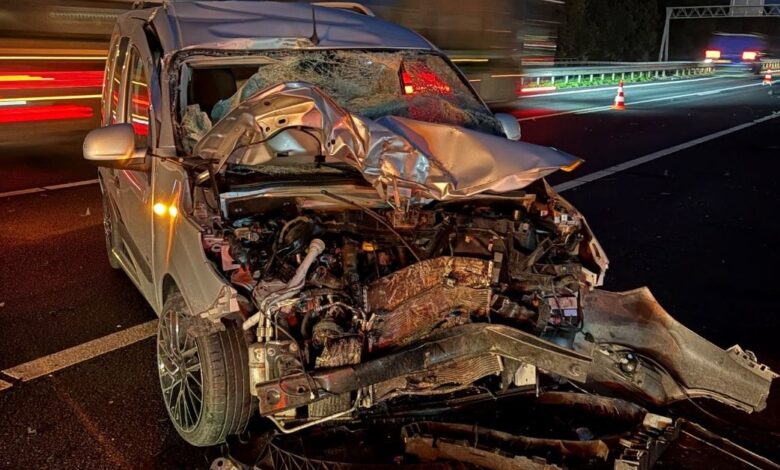 Enorme schade na ongeval tussen auto en vrachtwagen op snelweg