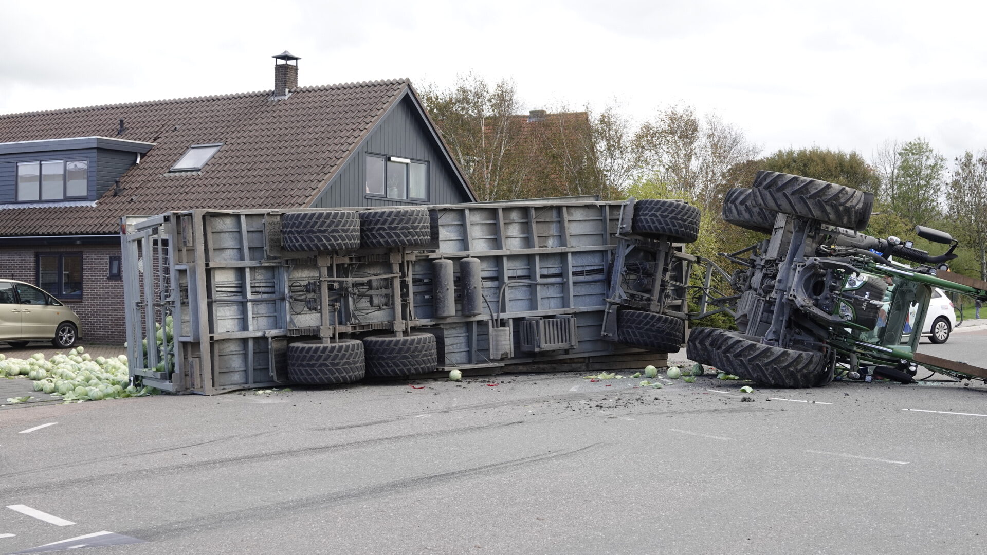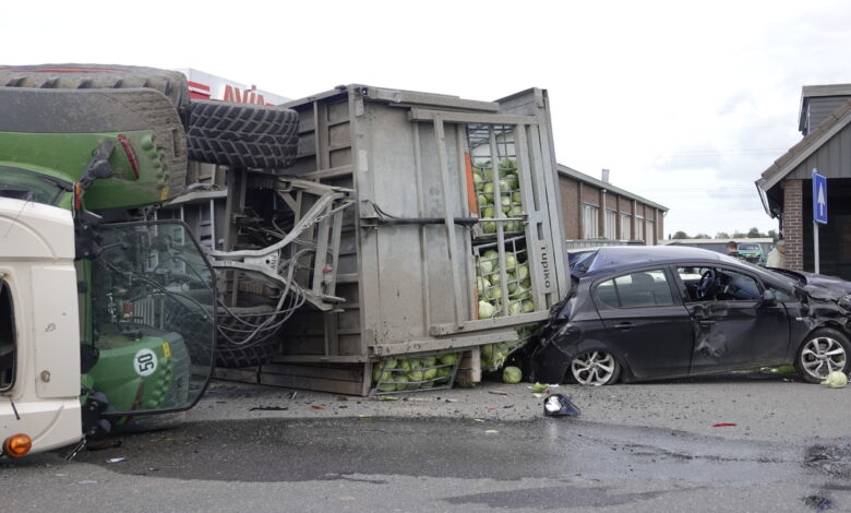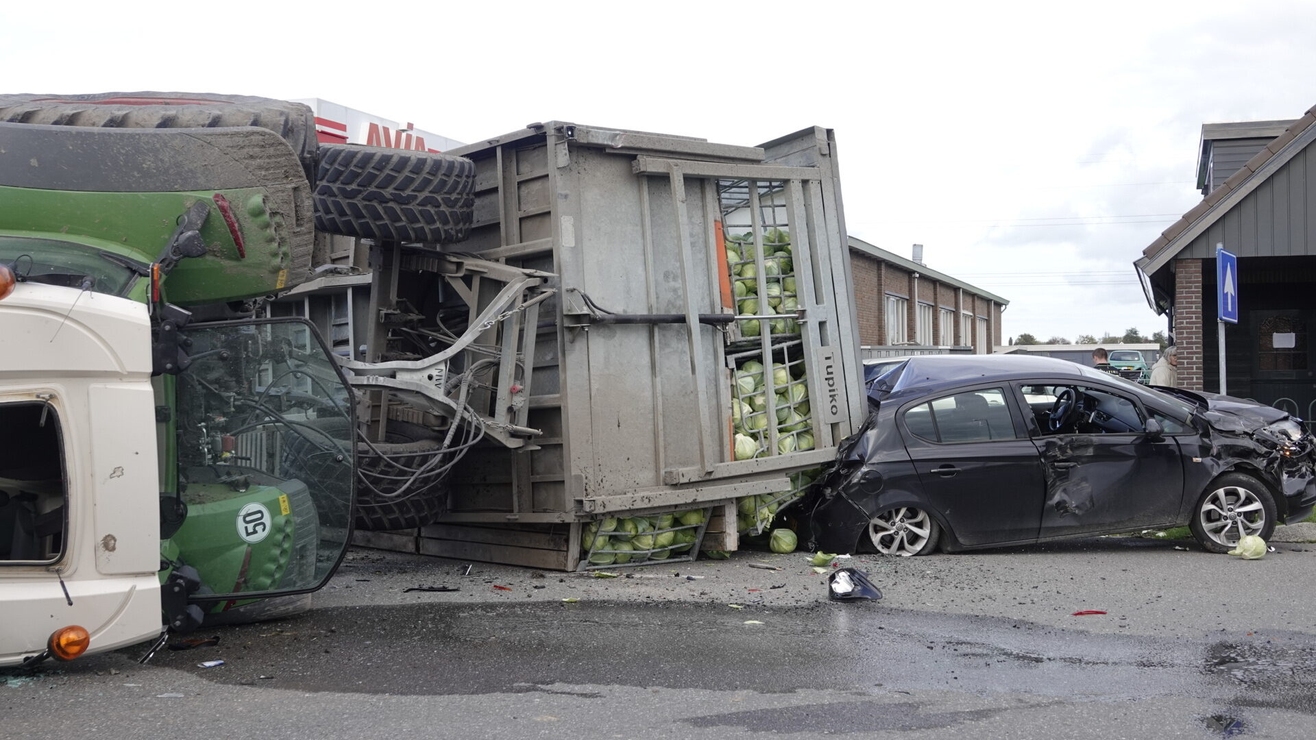 De trekker met kolen kantelde door nog onbekende oorzaak. Een grote hoeveelheid kool kwam hierdoor op de weg terecht. De achterzijde van de trailer raakte een auto die hierdoor zwaar beschadigd raakte.