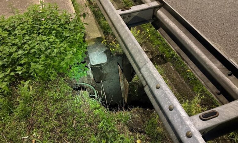 Sinkhole in snelweg, rijbaan afgesloten en 30 minuten file
