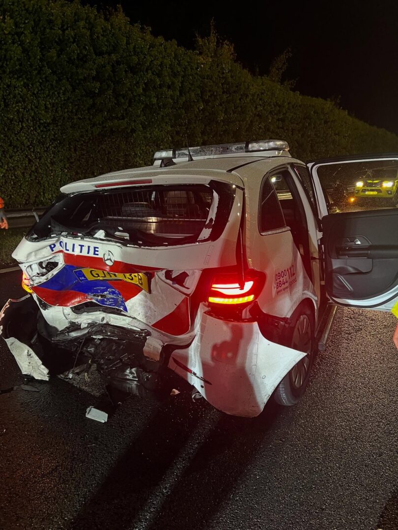 Ondanks die waarschuwingen kwam een personenauto met hoge snelheid op het politievoertuig afgereden en botste er hard op. Door alert te reageren konden de agenten en de betrokkene van het eerdere ongeval op tijd wegspringen, waardoor erger werd voorkomen.