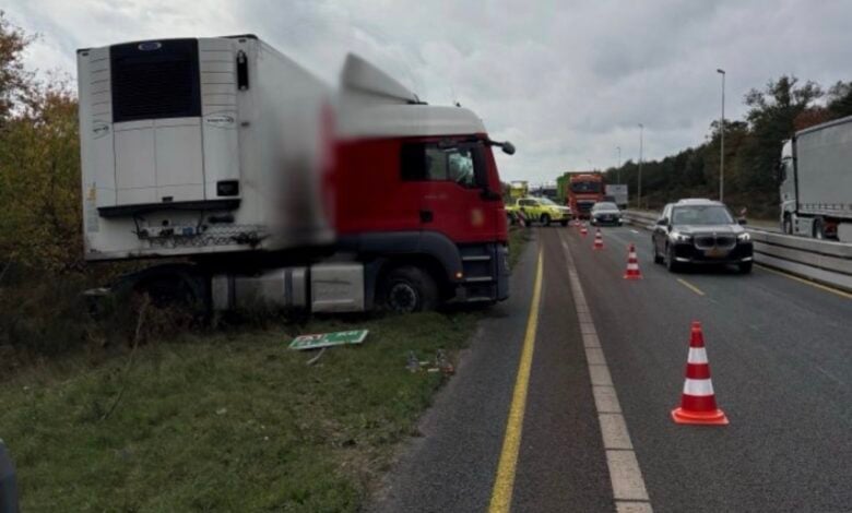 Vrachtwagen geschaard op snelweg, ruim 65 minuten file