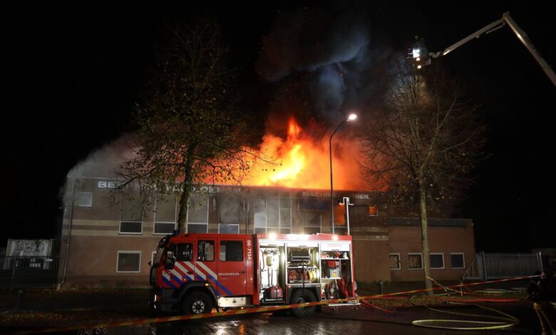 Zeer grote uitslaande brand met explosie in bedrijfspand