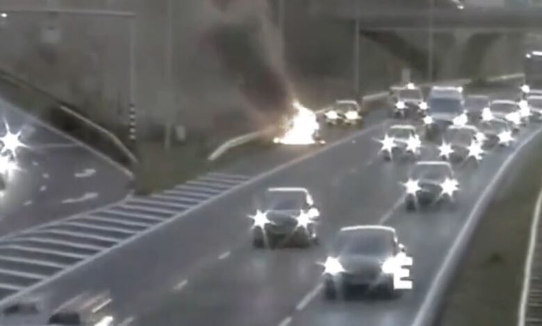 Auto volledig in brand op snelweg, 45 minuten file