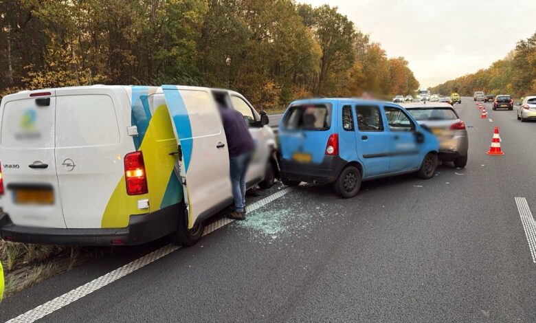 Ruim 60 minuten file na fors ongeval met meerdere voertuigen
