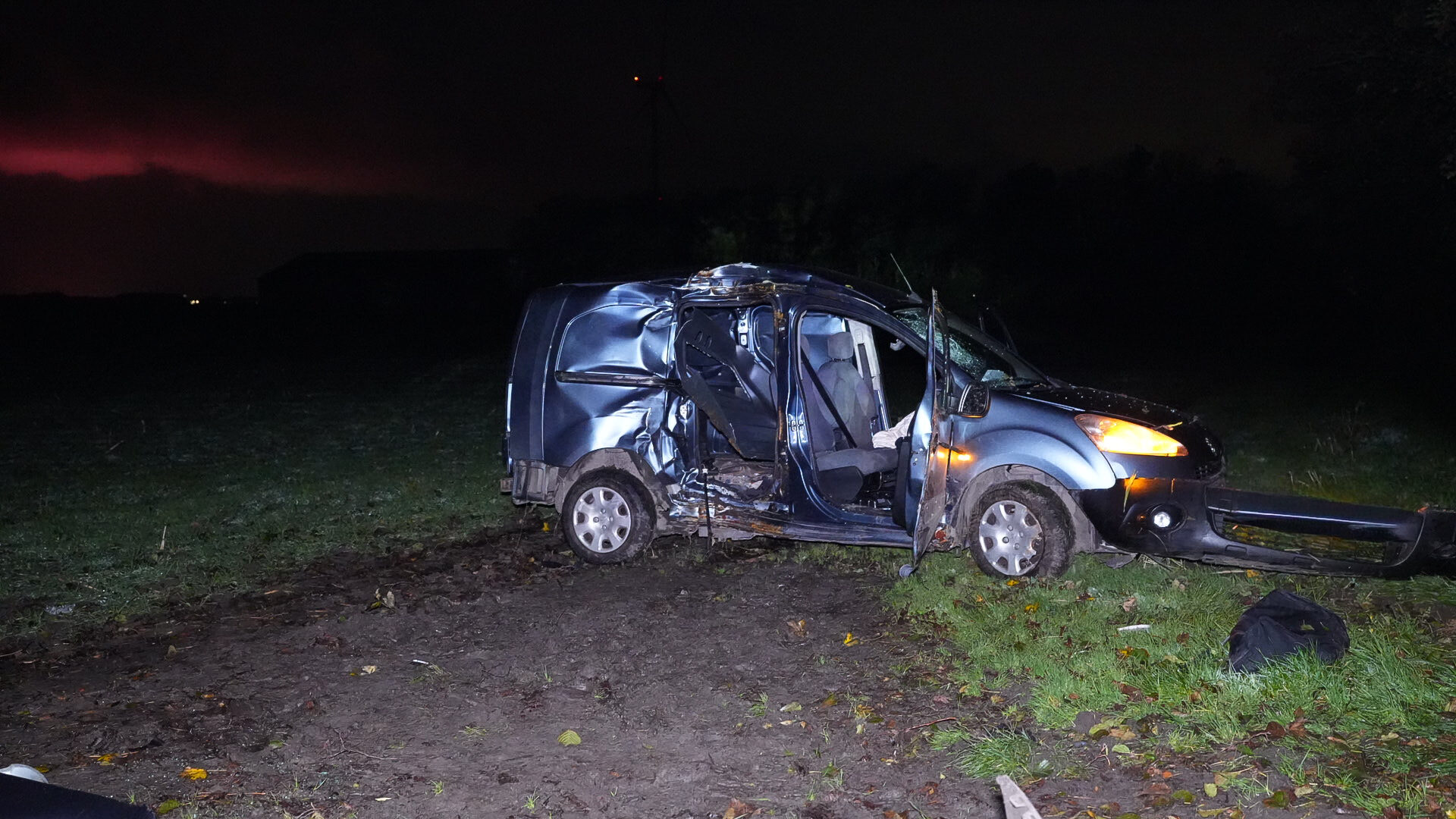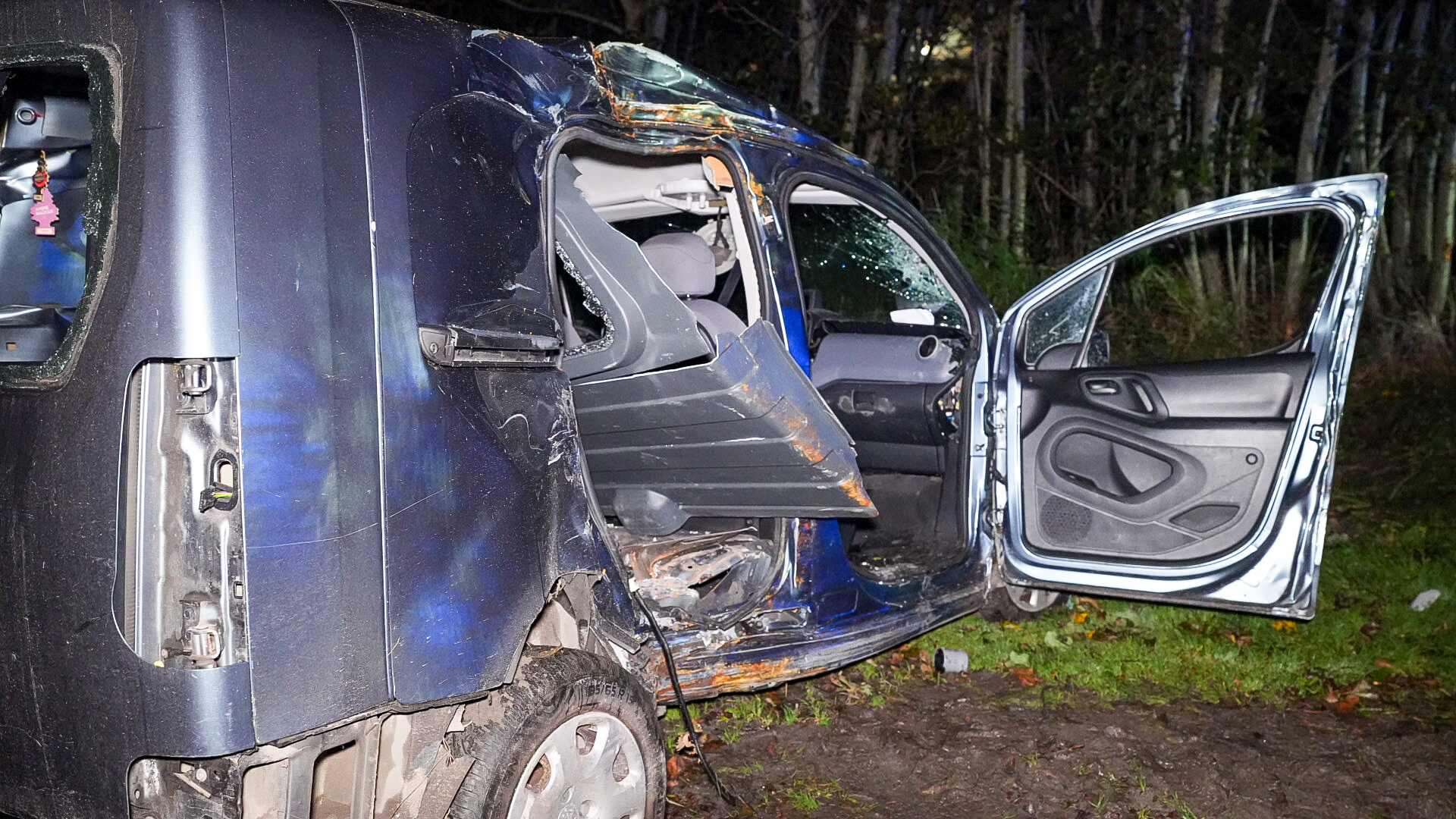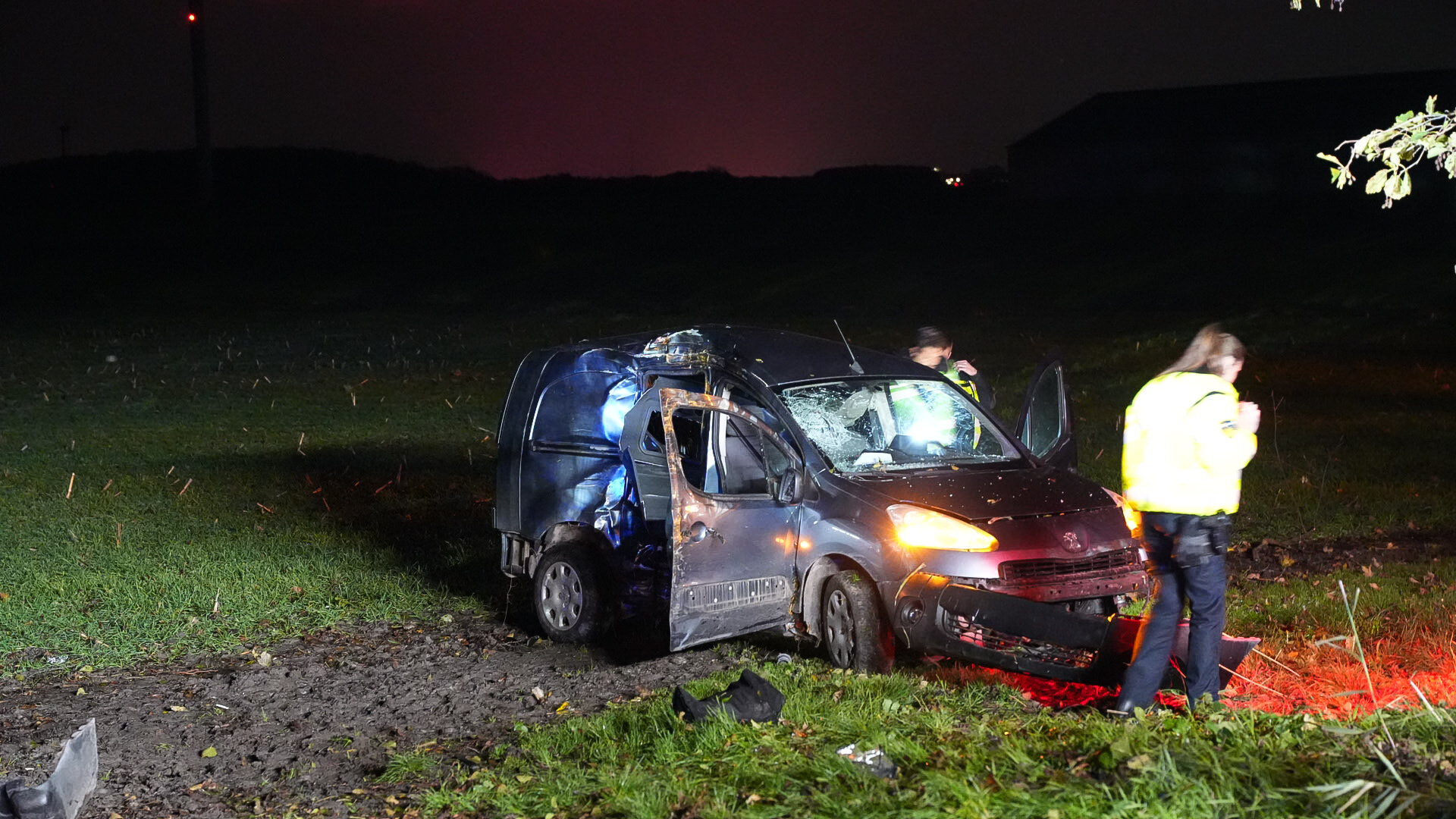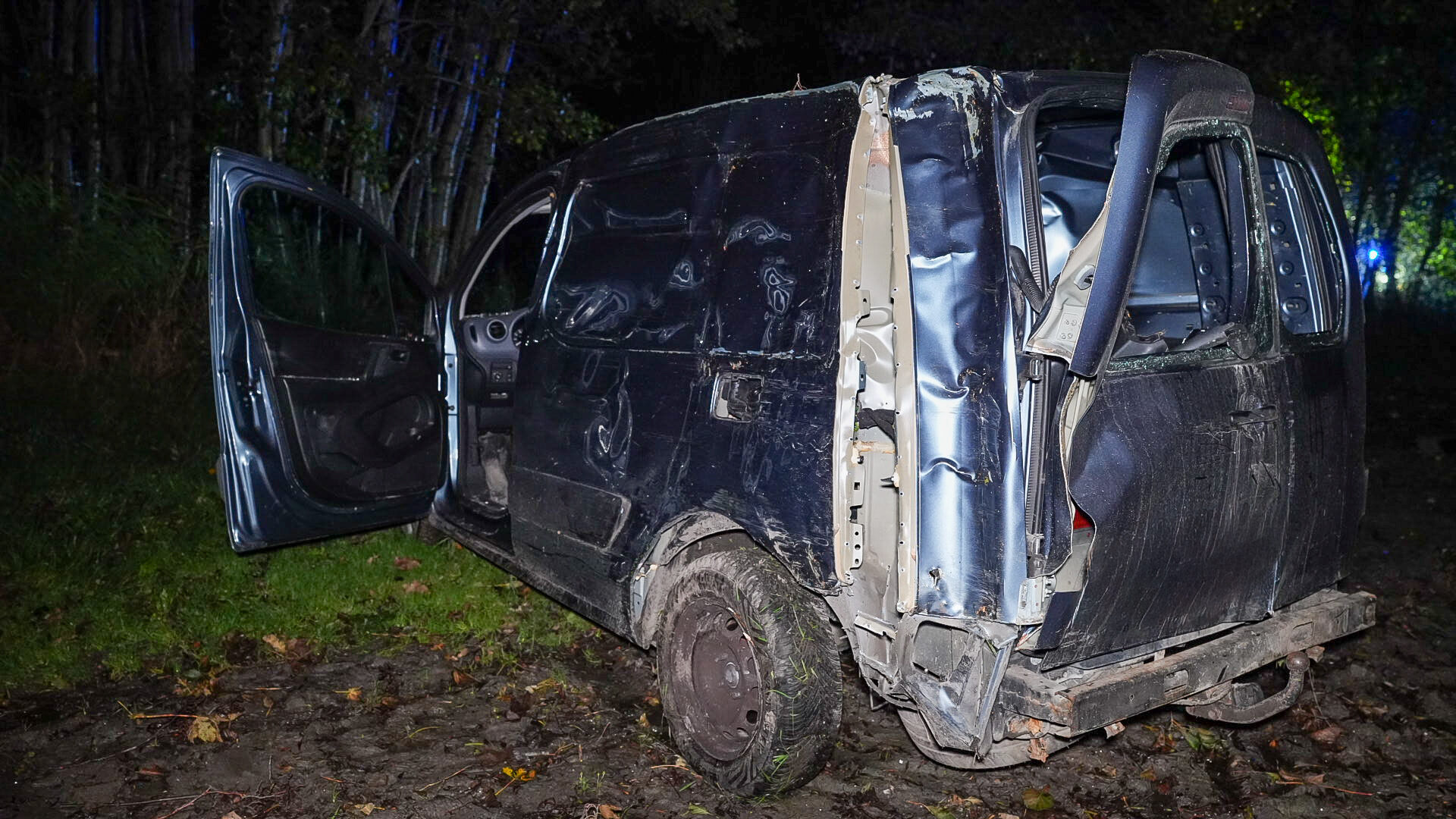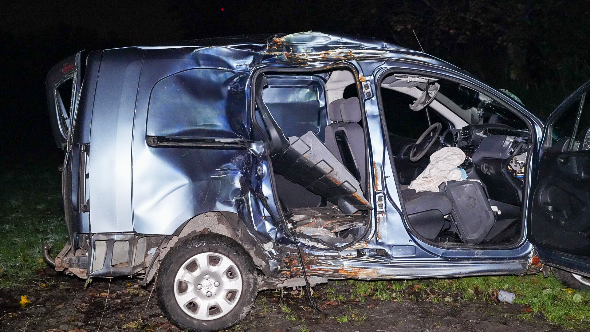 Een bestuurder van een bestelbus verloor in een bocht de controle over het voertuig en reed rechtdoor. De bus botste tegen meerdere bomen langs de weg en kwam uiteindelijk tot stilstand in een naastgelegen weiland.