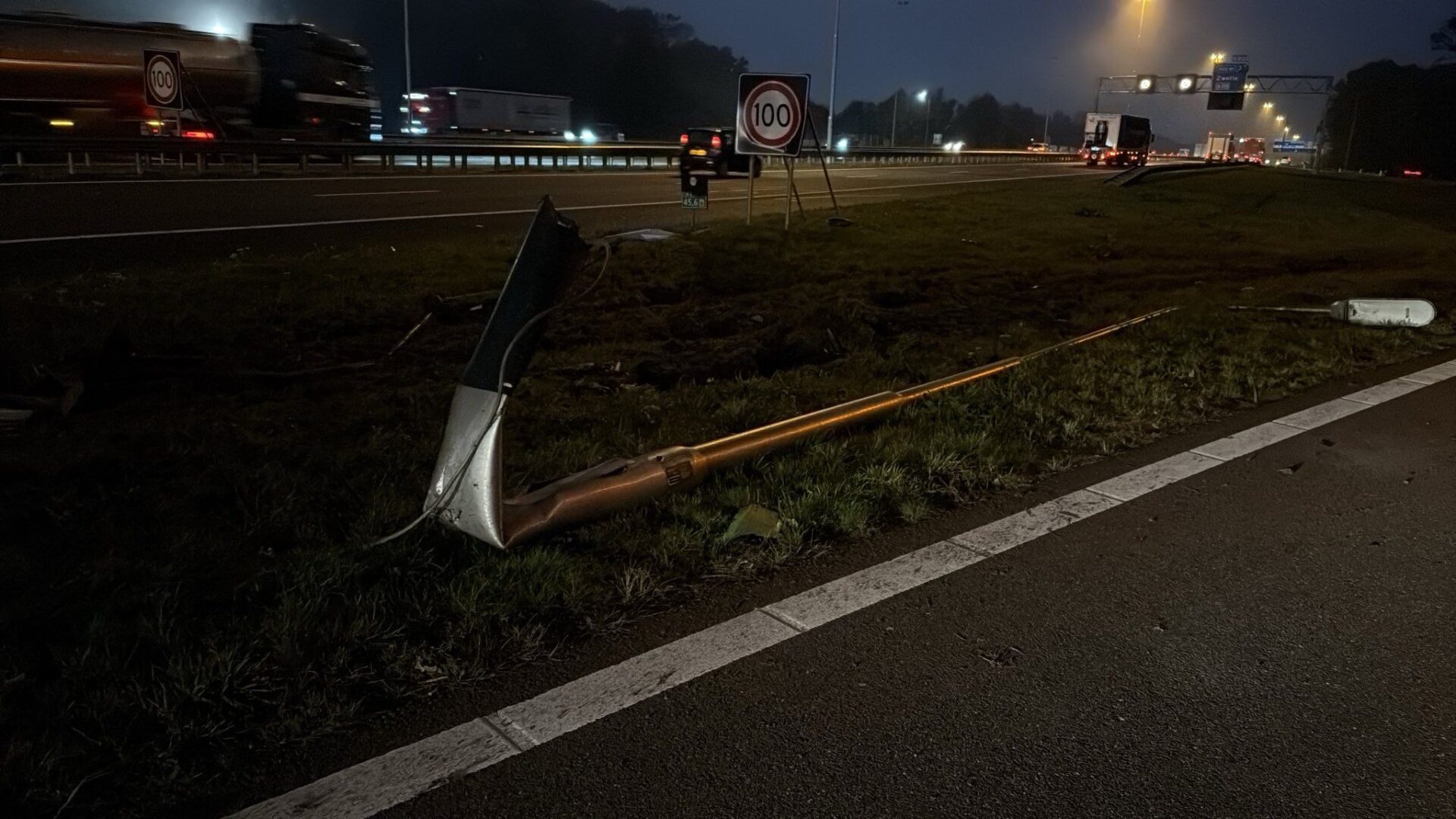 Bestelbus rijdt lantaarnpaal uit de grond, afrit afgesloten