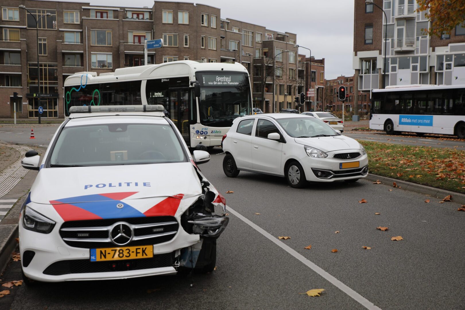 Op de Prins Willem-Alexanderlaan in Apeldoorn heeft rond 12.30 uur een aanrijding plaatsgevonden tussen een politieauto en een personenauto. Beide voertuigen raakten hierbij fors beschadigd.