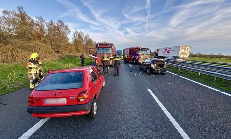 Forse schade en snelweg dicht na ongeval met meerdere voetuigen