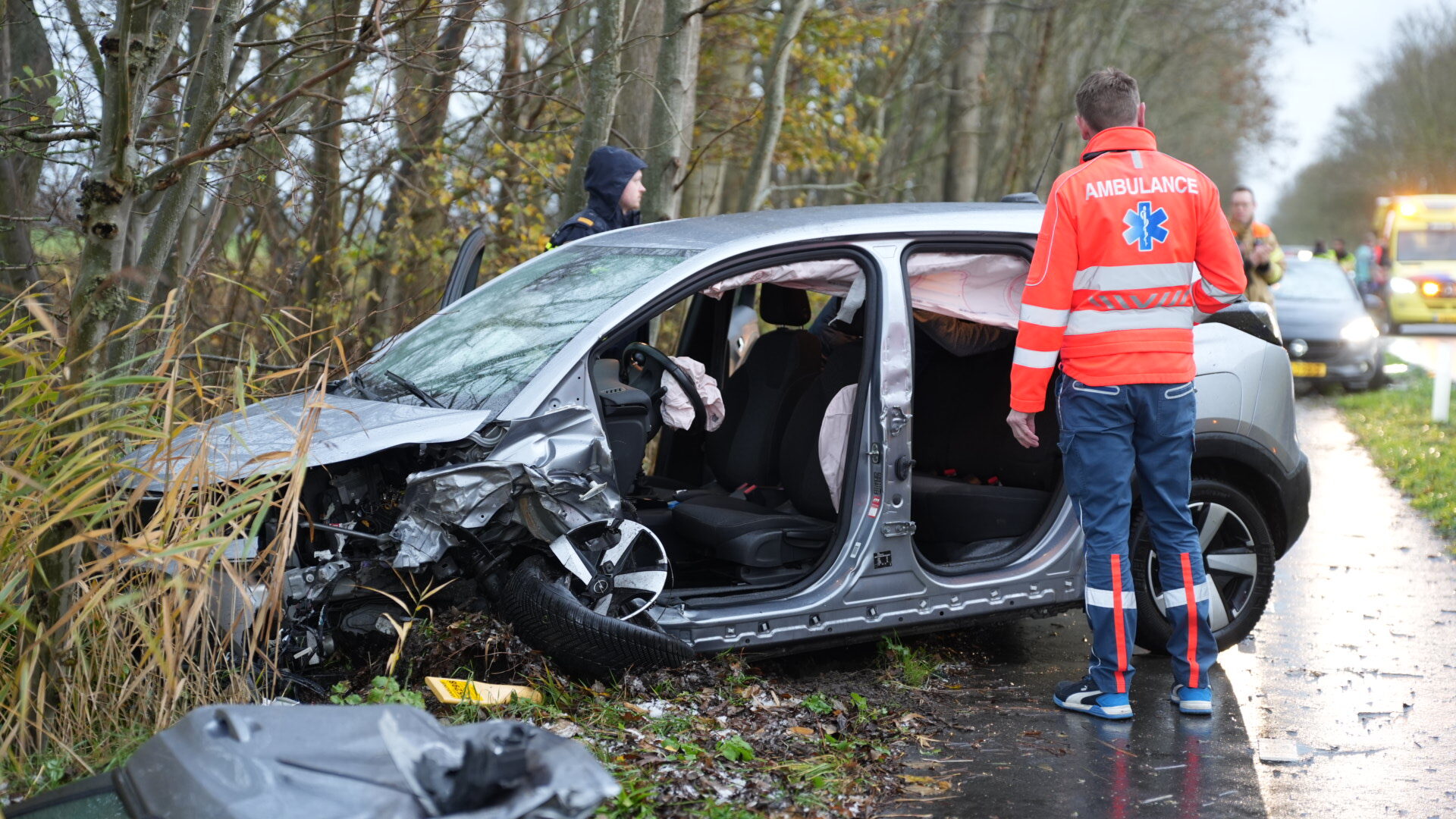 op de Nieuwesluizerweg in Slootdorp heeft donderdagmiddag een frontale botsing plaatsgevonden. Beide auto’s kwamen tot stilstand naast de weg.