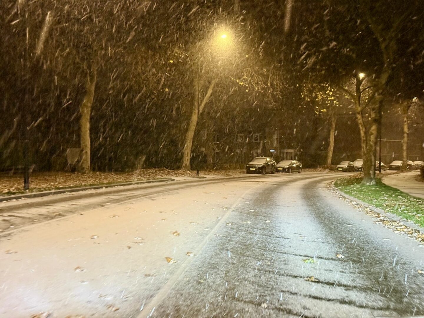 In de nacht van zaterdag op zondag zijn de eerste echte winterse sneeuwvlokken van het seizoen over Nederland getrokken. Vanaf ongeveer half zes viel er een reeks buien die in korte tijd zorgden voor een dun, wit sneeuwdek.