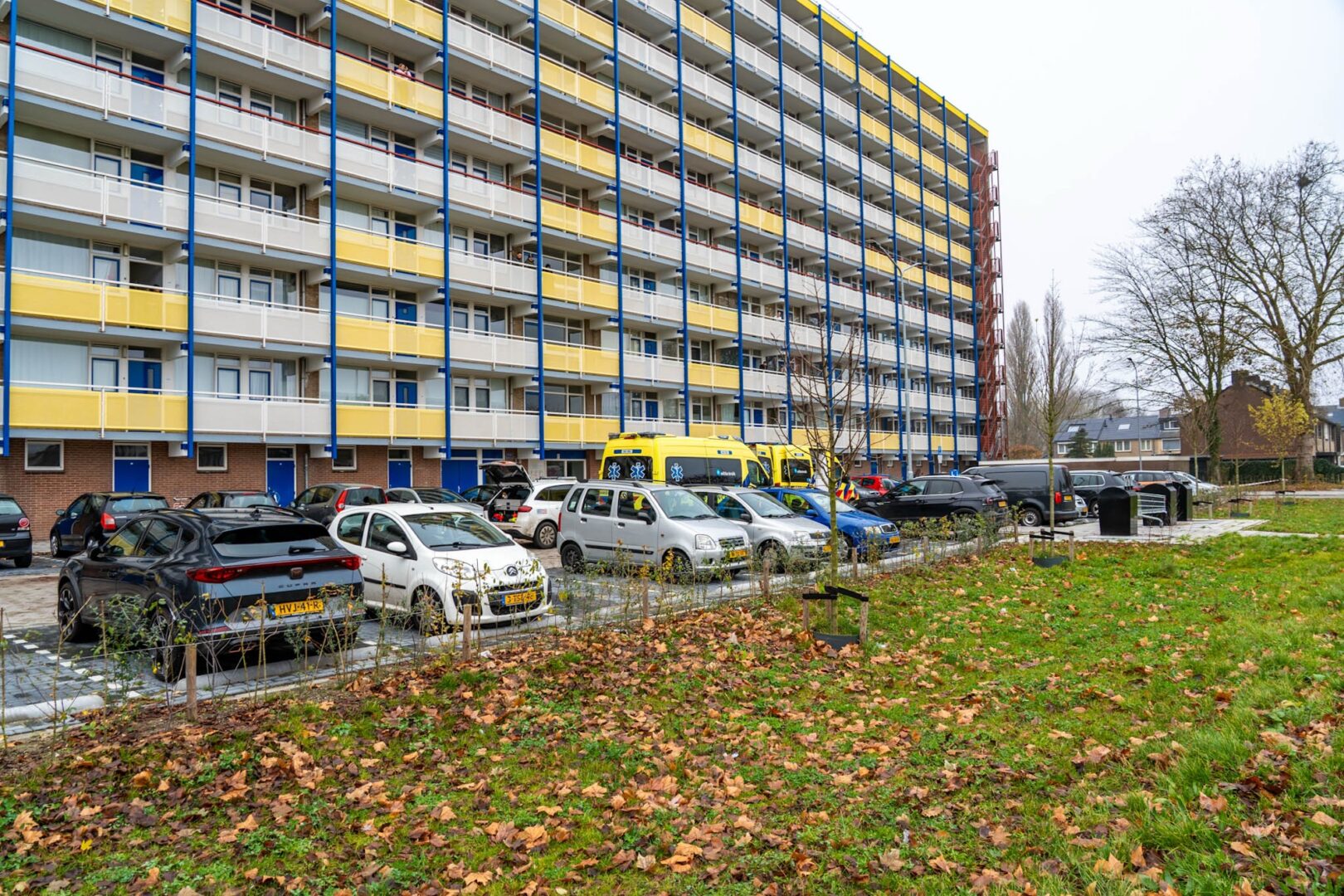 De omgeving rondom het flatgebouw is tijdelijk afgezet voor onderzoek door de politie en de forensische opsporing.