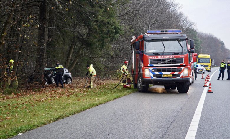 Dodelijk ongeluk op snelweg, automobilist botst tegen boom