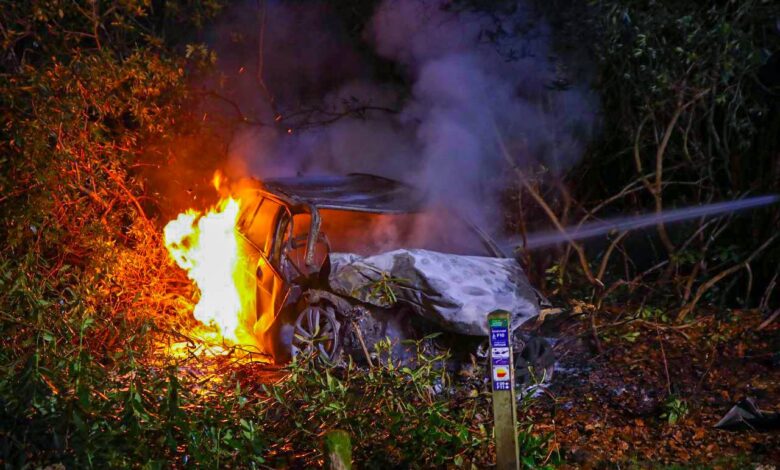 Dode en zwaargewonde na ernstige crash; auto botst tegen boom en vliegt in brand