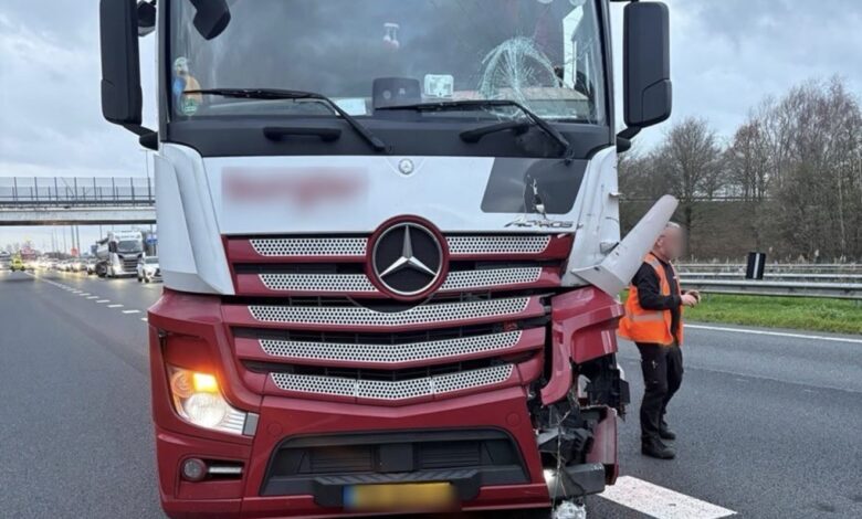 Fors ongeval tussen twee vrachtwagens op snelweg