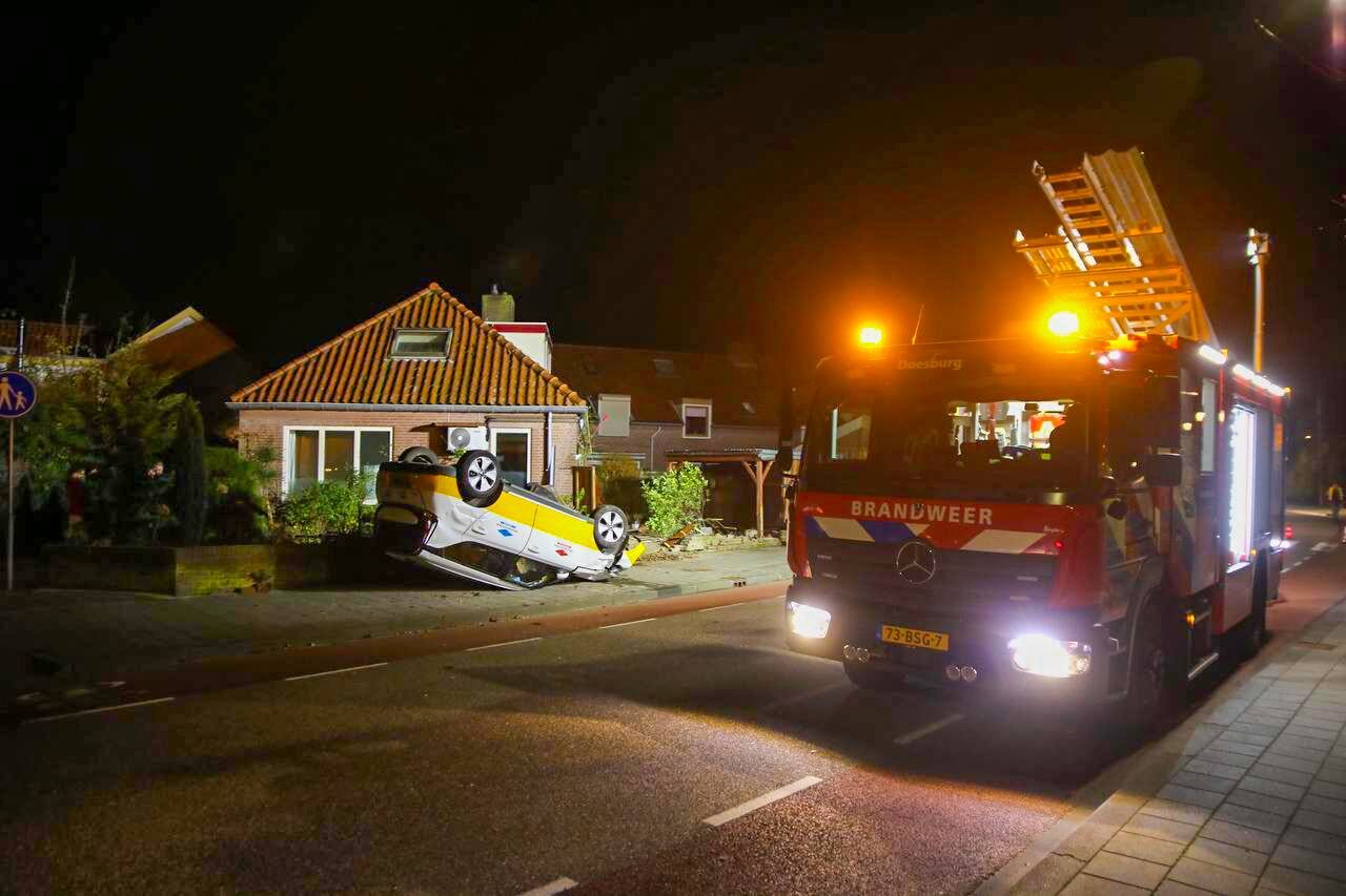 Op de Veerpoortdijk in Doesburg is vrijdagavond een auto over de kop geslagen bij een verkeersongeval. Het incident gebeurde kort voor 18.30 uur.