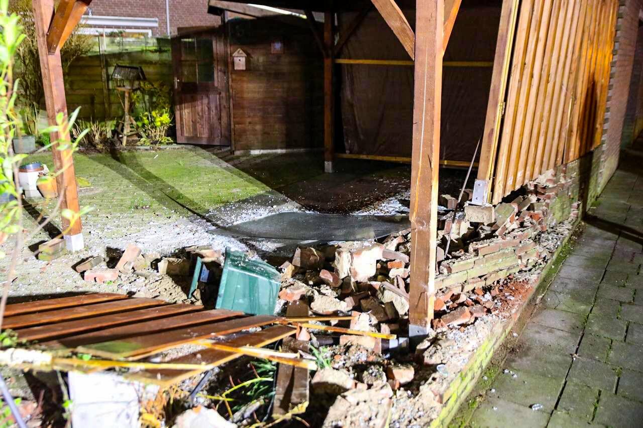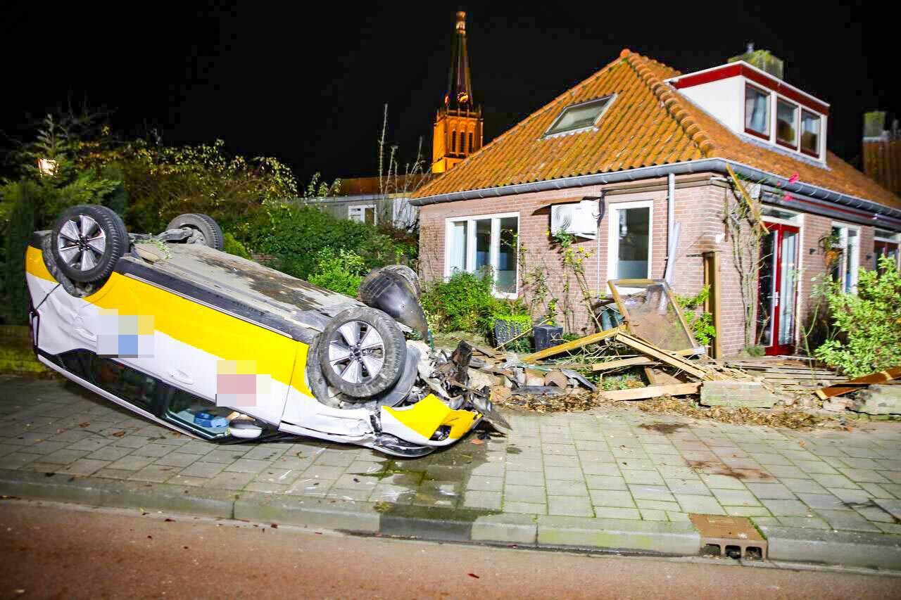 Enorme ravage nadat auto tuinmuur ramt en over de kop slaat