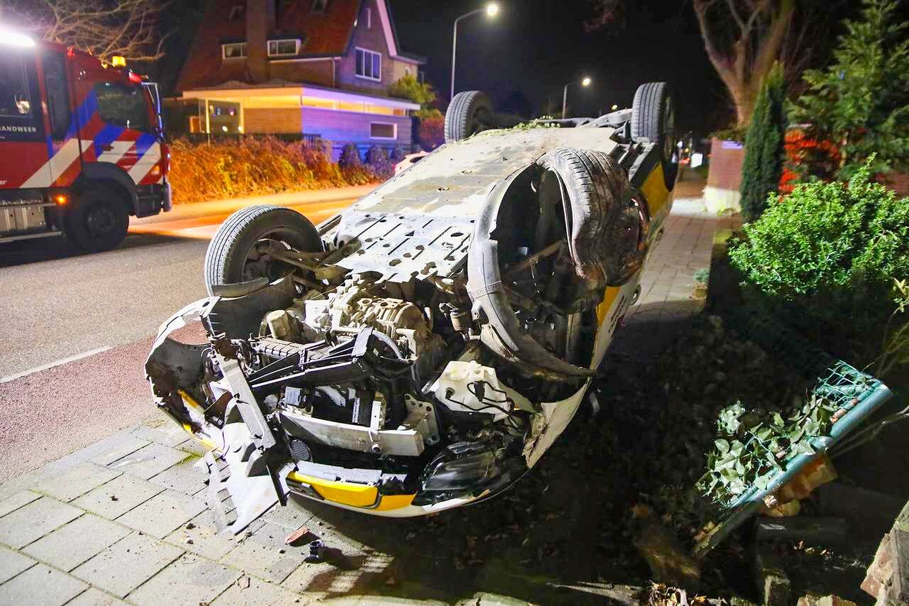 Door een nog onbekende oorzaak ramde de automobilist een tuinmuurtje en sloeg daarna over de kop. Meerdere hulpdiensten, waaronder de brandweer, rukten massaal uit. Een inzittende is ter plaatse door ambulancepersoneel nagekeken en behandeld. De bestuurder kwam met de schrik vrij
