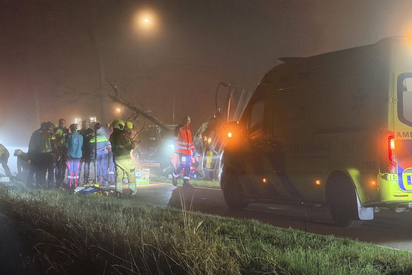 Rond 02.15 uur kregen de hulpdiensten een melding van het zware ongeval. Een auto verloor door nog onbekende oorzaak de controle en raakte van de weg. De auto kwam in de berm terecht en botste zijwaarts tegen een boom, waar het voertuig tot stilstand kwam. Door de impact raakte het voertuig zwaar beschadigd.