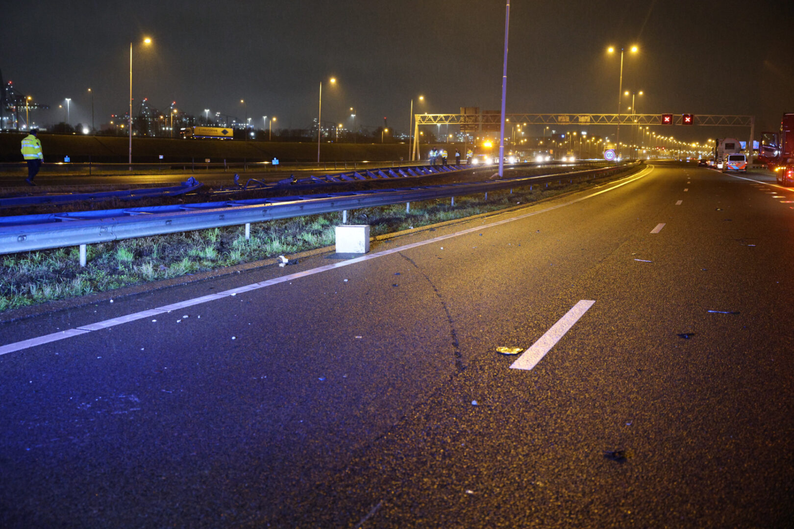 De combinatie kwam tot stilstand in de middenberm, waarbij een grote hoeveelheid oud ijzer over de rijbanen werd verspreid. Hoewel het ongeval plaatsvond op de rijrichting naar Europoort, belandde ook in de richting van Ridderkerk veel lading op het asfalt. Om die reden is de hoofdrijbaan bij knooppunt Benelux in beide richtingen afgesloten.
