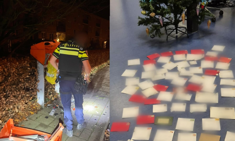 Tijdens een surveillance troffen agenten de vernielde brievenbus aan. Op het koude asfalt lagen meerdere kerstkaarten verspreid, die door de explosie uit de brievenbus waren geslingerd. De politie heeft alle kaartjes verzameld en meegenomen naar het politiebureau.
