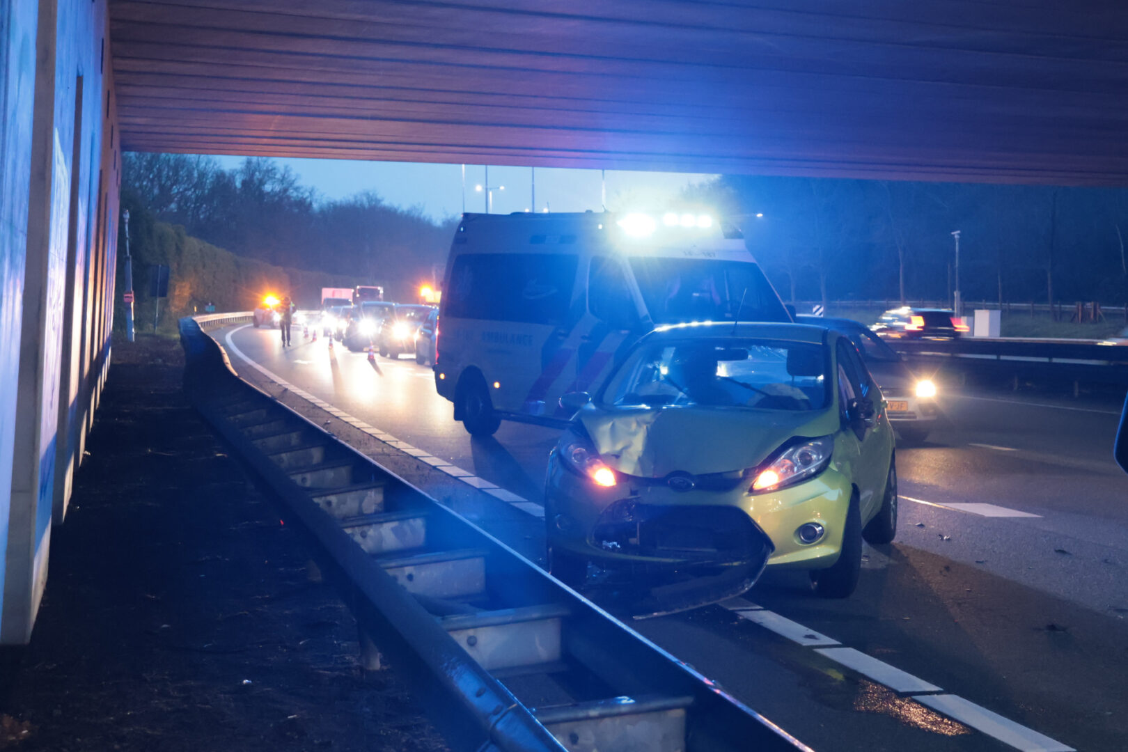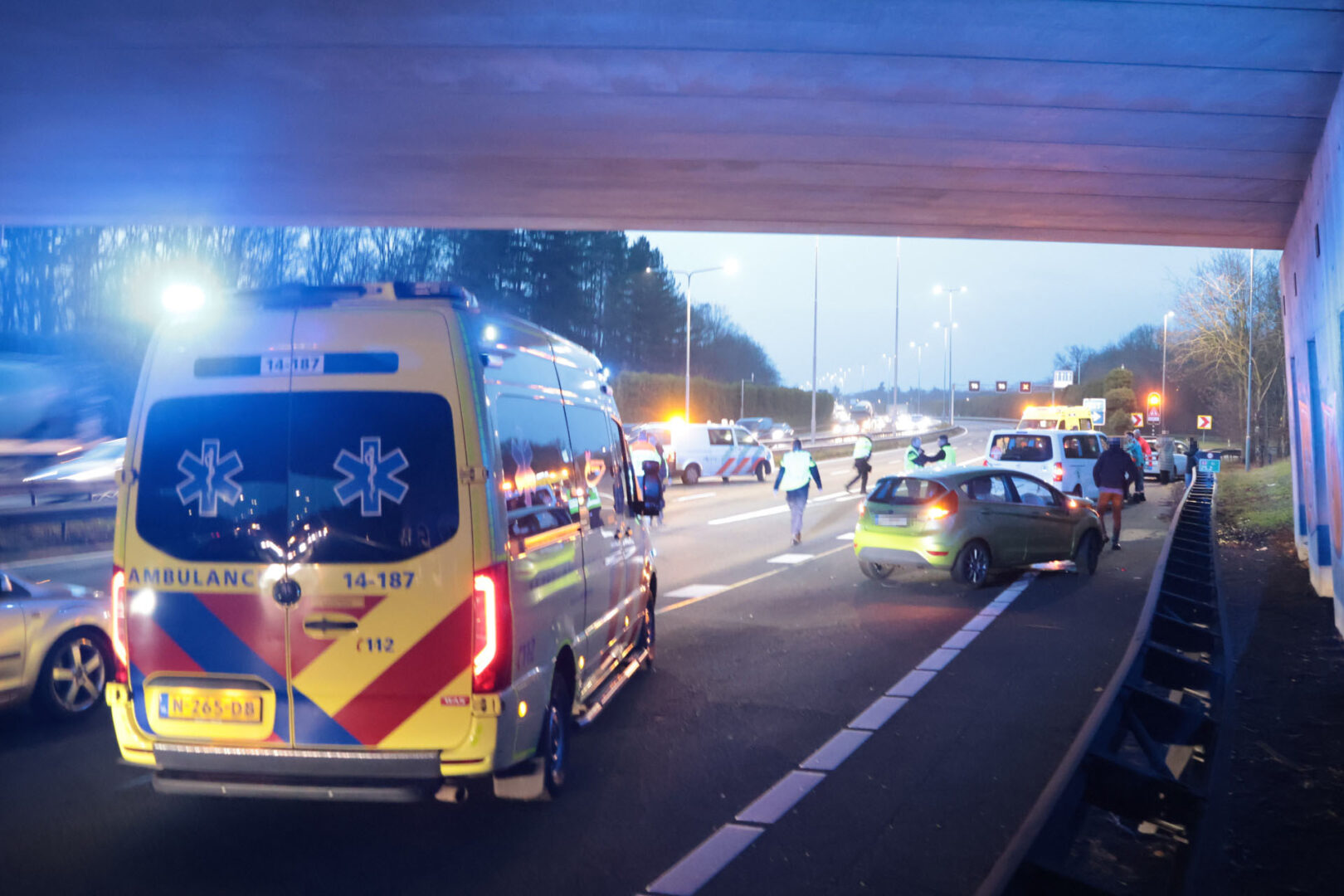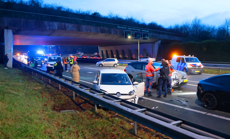 Snelweg dicht na fors ongeval met zes auto’s, ruim 60 minuten file