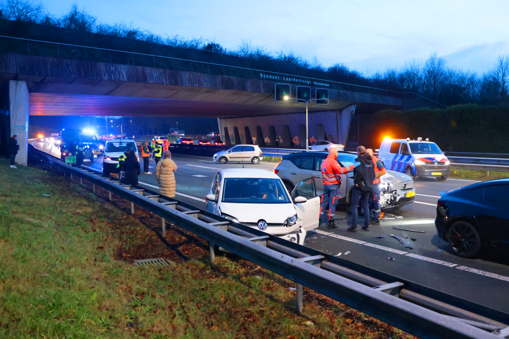Maandagmiddag heeft er rond 16.35 uur een verkeersongeval met letsel plaatsgevonden op de Rijksweg A1 ter hoogte van Laren. In de richting van Amsterdam botsten zes voertuigen op elkaar.