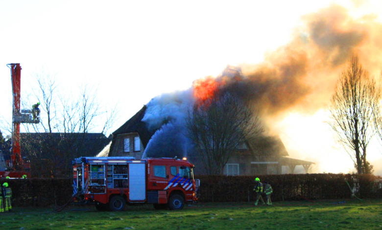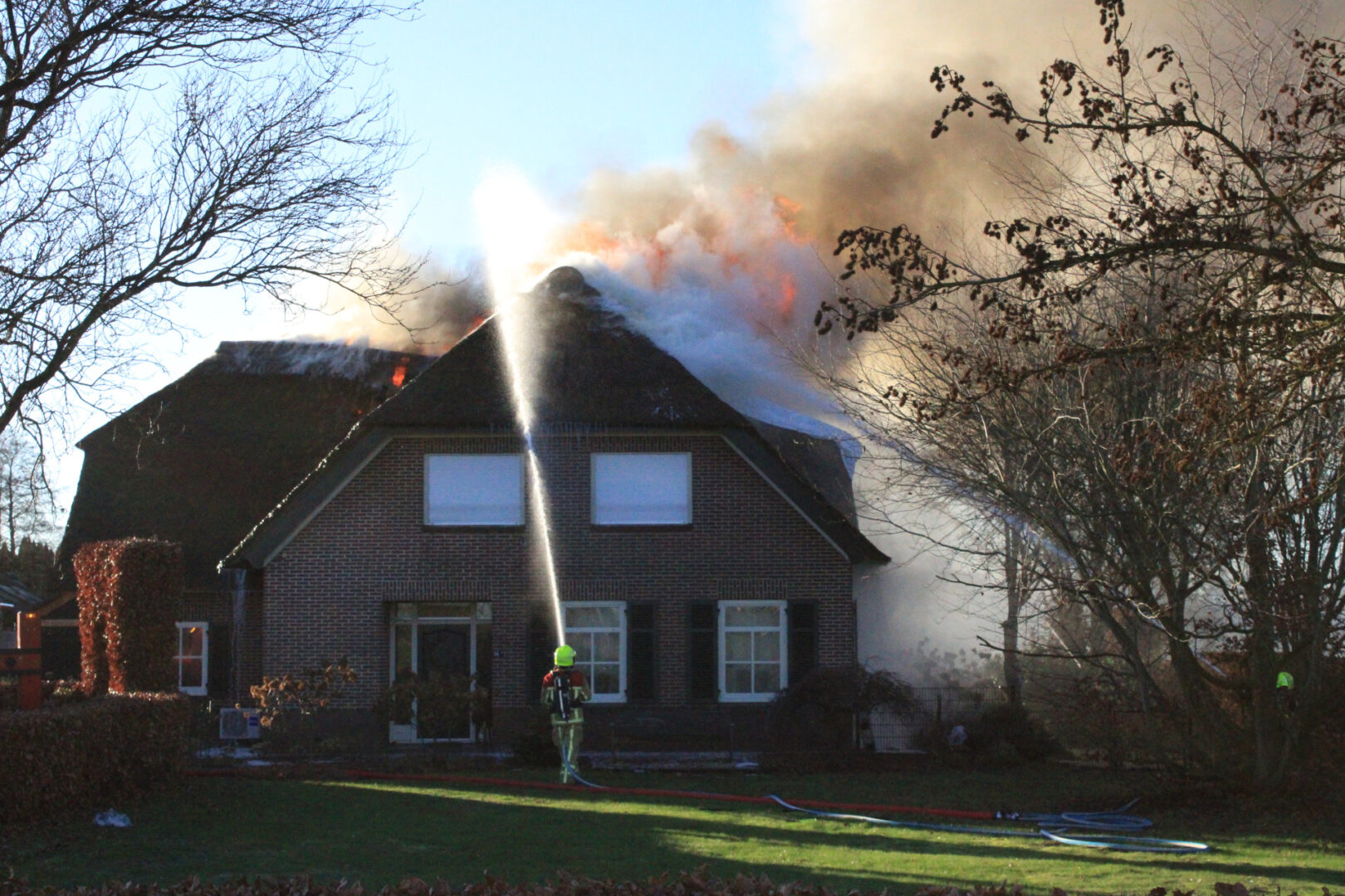 Grote uitslaande brand in rieten dak, woning verloren gegaan