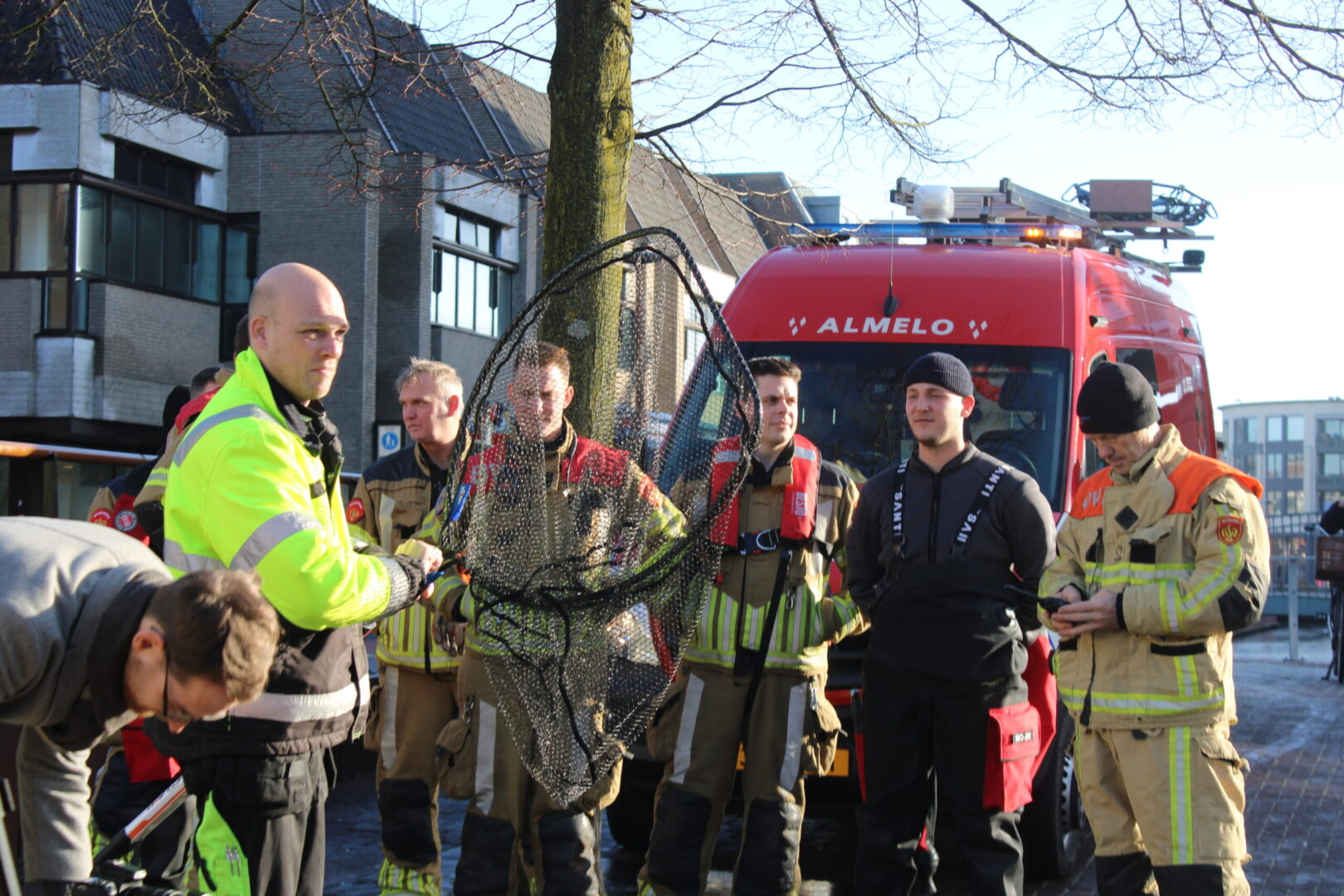 Omstreeks 11.45 uur volgde een tweede melding, ditmaal bij het baken ter hoogte van restaurant Kreta in Almelo. De brandweer van Almelo kreeg opnieuw een melding van een dier in nood. De waterongevallenbestrijding, die na de inzet in Saasveld nog in de buurt was, is direct doorgereden. Het ging om een zwaan, maar het dier zat niet vast in het ijs en was niet gewond. De brandweer verleende in dit geval alleen assistentie aan de dierenambulance.