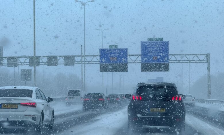 Het verkeer in Nederland moet op veel plaatsen rekening houden met gladheid door sneeuw en bevriezing van natte wegen. Voor het hele land geldt code geel, maar voor Noord-Holland, Zuid-Holland en Utrecht is code oranje van kracht.