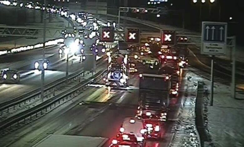 Snelweg dicht en 60 minuten vertraging door geschaarde vrachtwagen