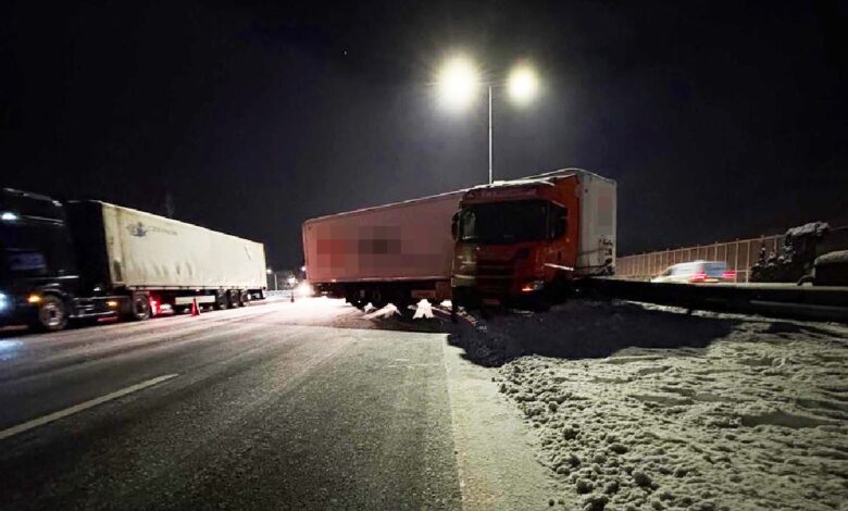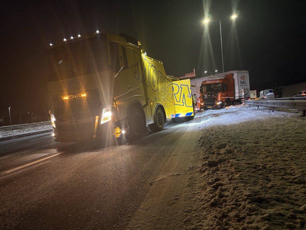 Monsterfile van 120 minuten op snelweg door geschaarde vraachtwagencombinatie