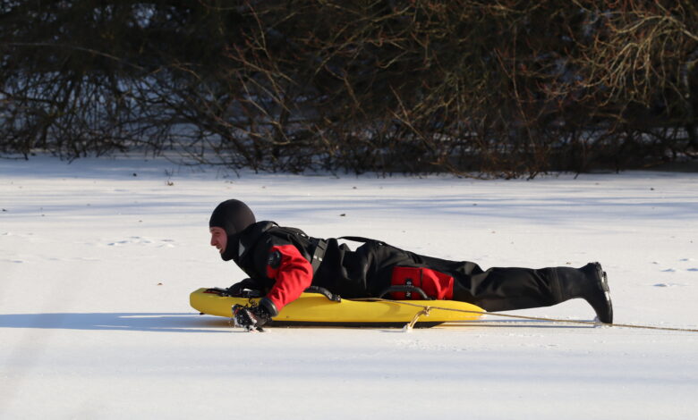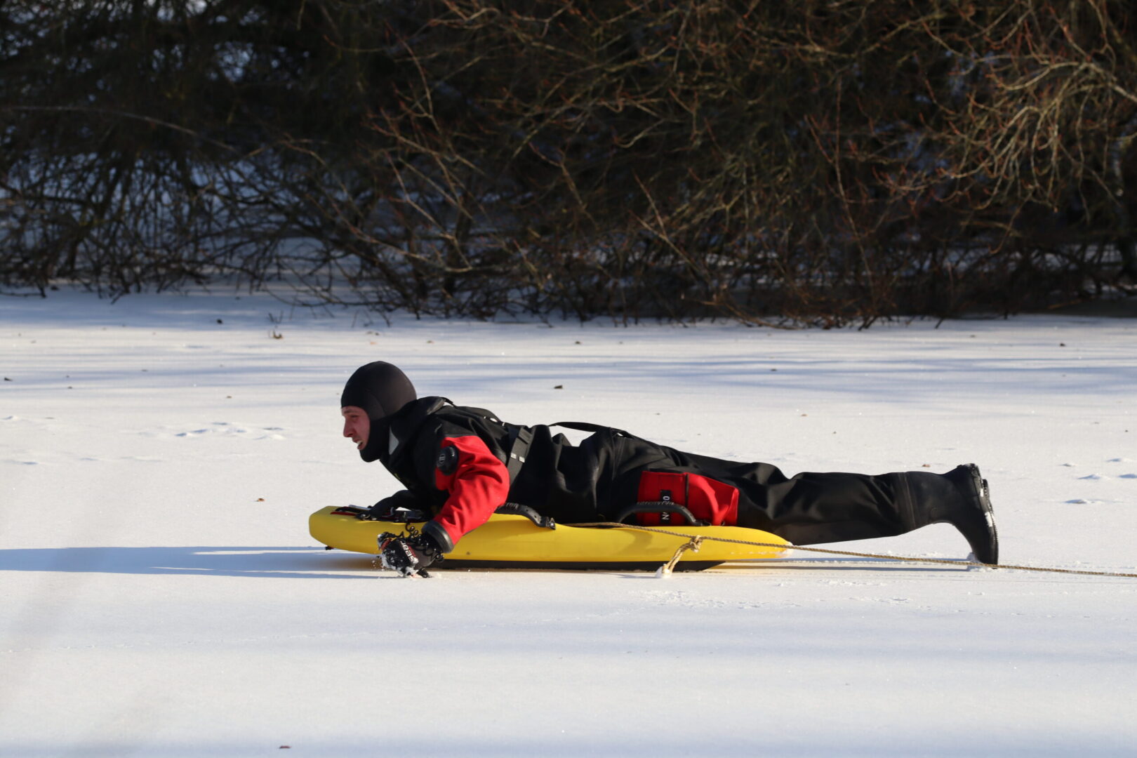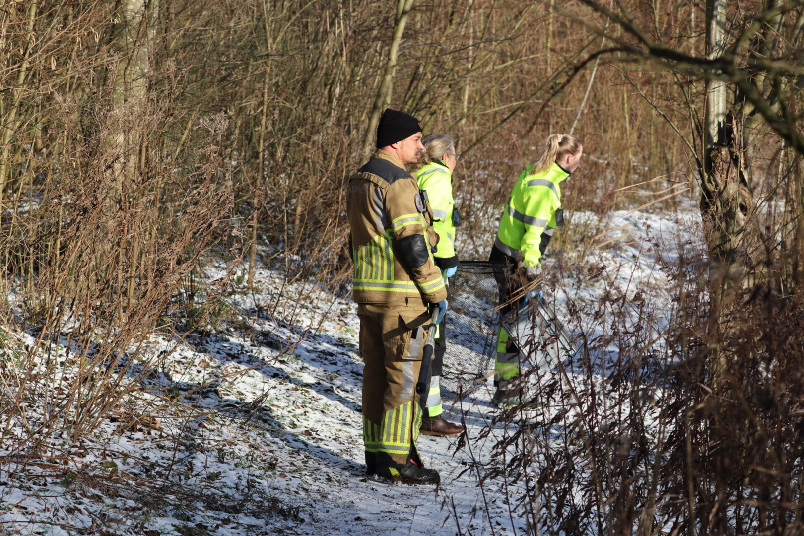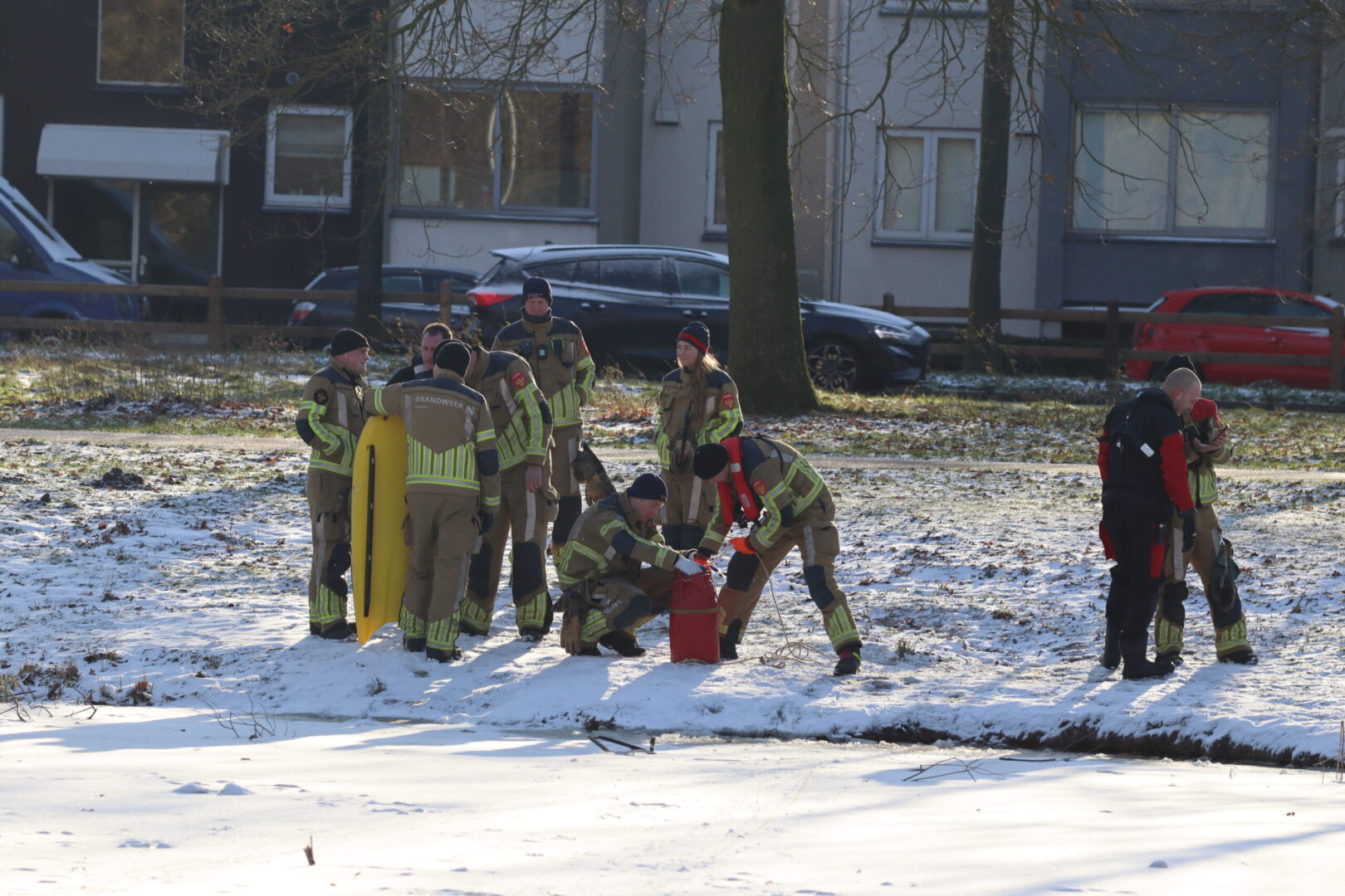 Ter plaatse bleek de meeuw niet vast te zitten maar kon die nog wel vliegen. De brandweer kwam in eerste instantie met de hoogwerker omdat misschien de ladder over het ijs geschoven kon worden. Ook de TS kwam hier bij assisteren. Toen dit niet bleek te kunnen is er besloten de duikers te laten komen.