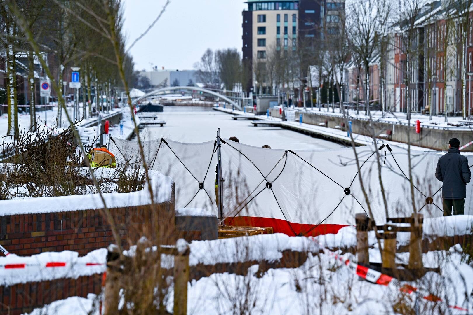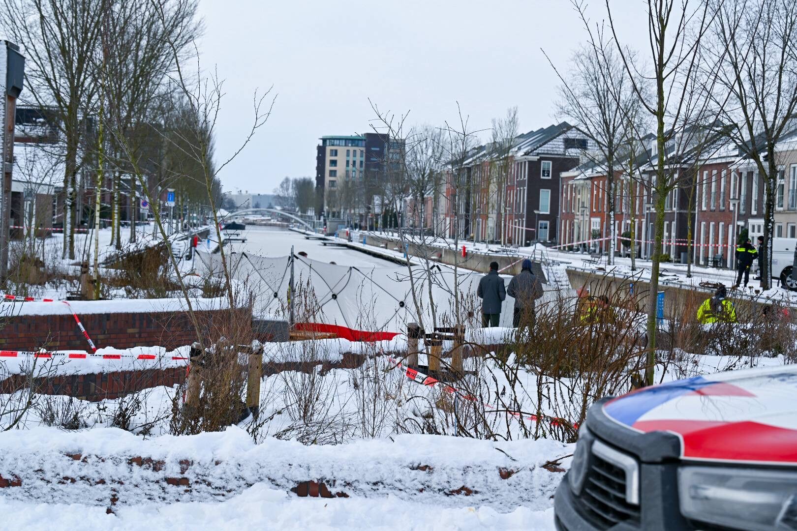 De brandweer en politie hebben zichtschermen geplaatst rondom het water waar de zoekactie plaatsvond. De politie schakelde de brandweer in nadat er tijdens de zoektocht “iets” werd aangetroffen. Vervolgens zijn schermen rondom het gehele water geplaatst om het zicht af te schermen.