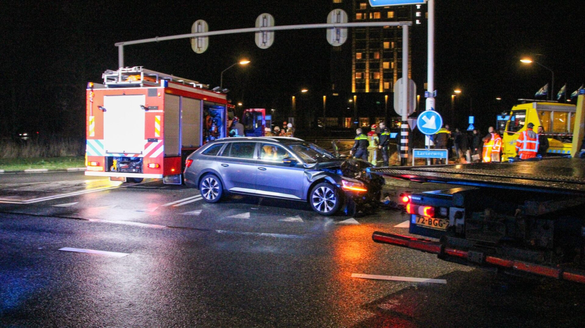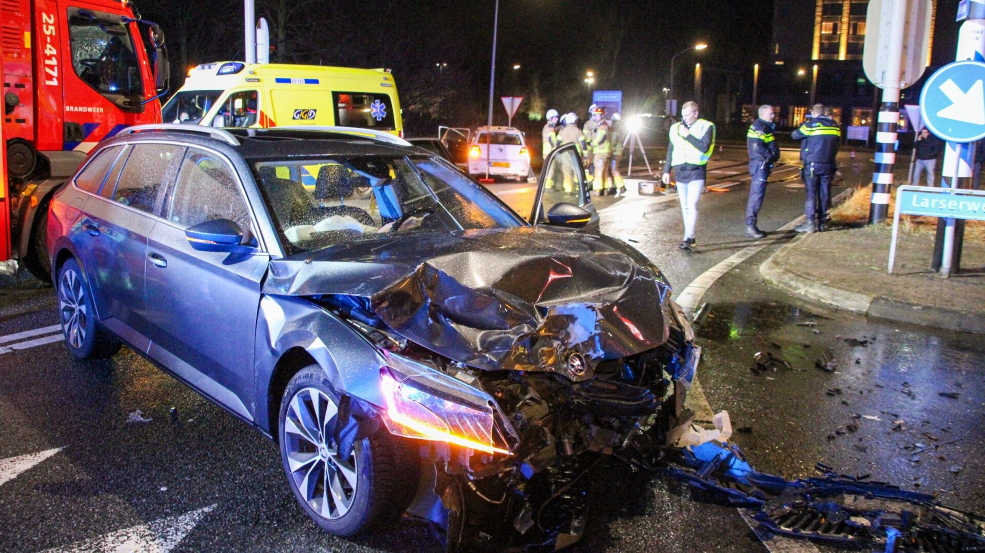 Op de kruising van de N309 (Larserweg) met het Larserplein heeft dinsdagavond rond 21.00 uur een ernstige aanrijding plaatsgevonden. Meerdere hulpdiensten, waaronder de brandweer en ambulancedienst, werden met spoed opgeroepen.