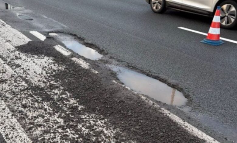 Forse 50 minuten file door flinke vortschade in wegdek