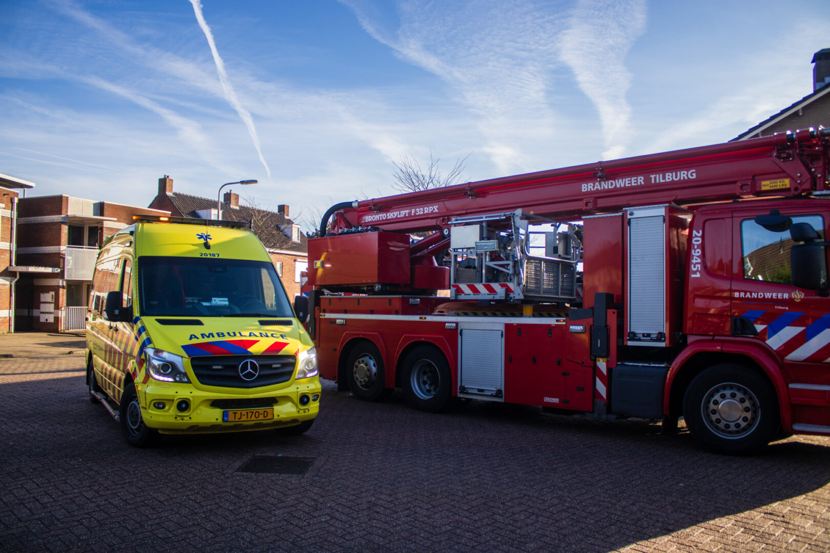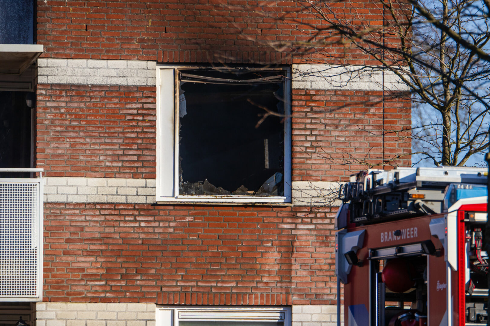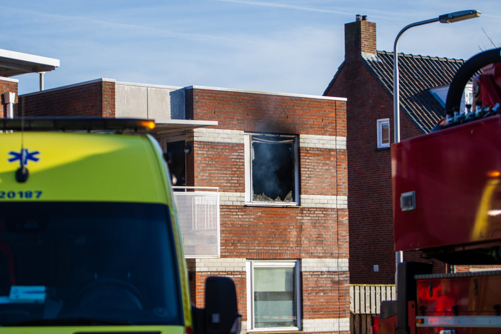 De brand veroorzaakte grote schade aan de woning De brandweer schaalde al snel op naar middelbrand om meer voertuigen in te kunnen zetten. Zo kwamen er twee tankautospuiten ter plaatse en een hoogwerker. De straat is enige tijd volledig afgezet door de politie en handhaving.