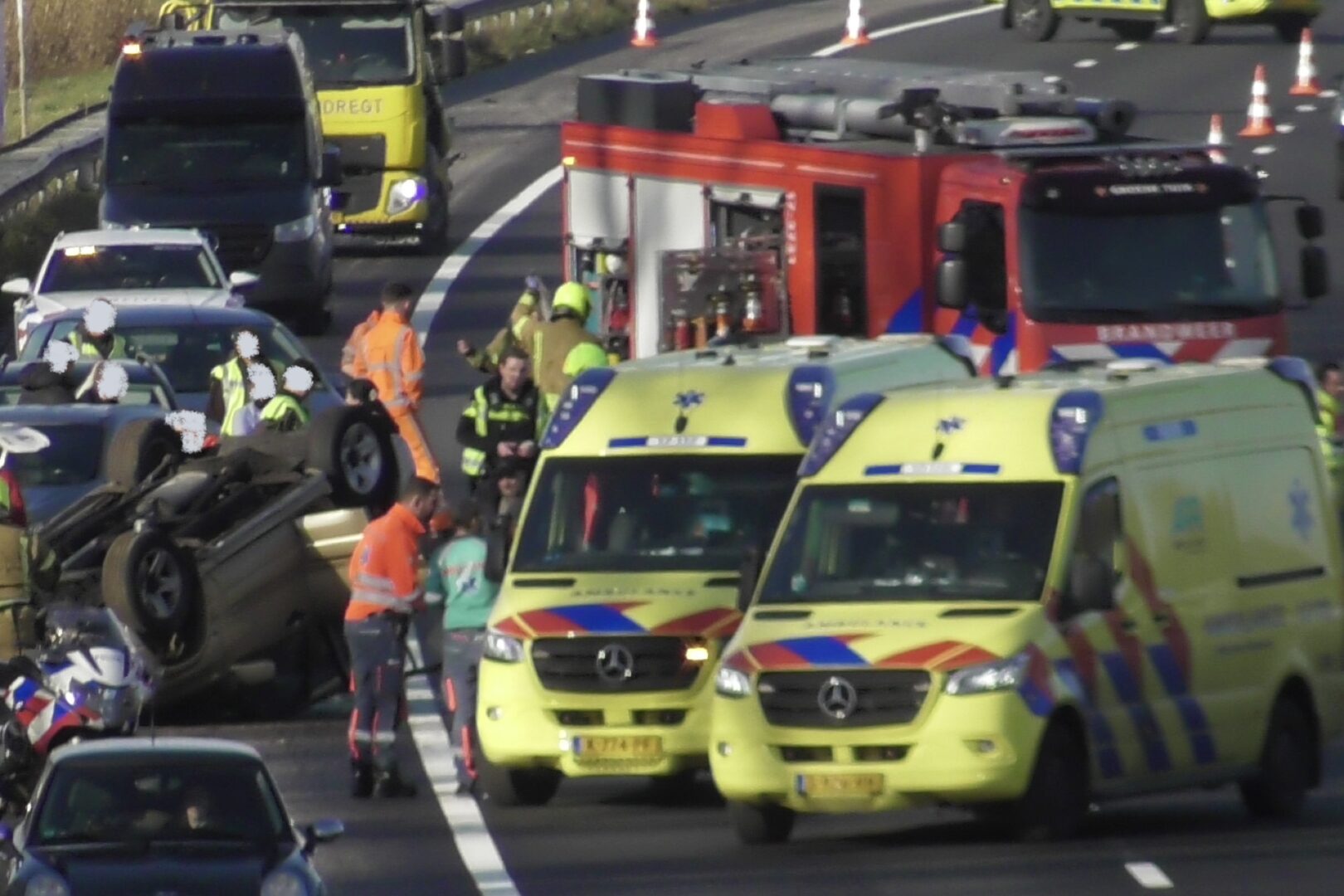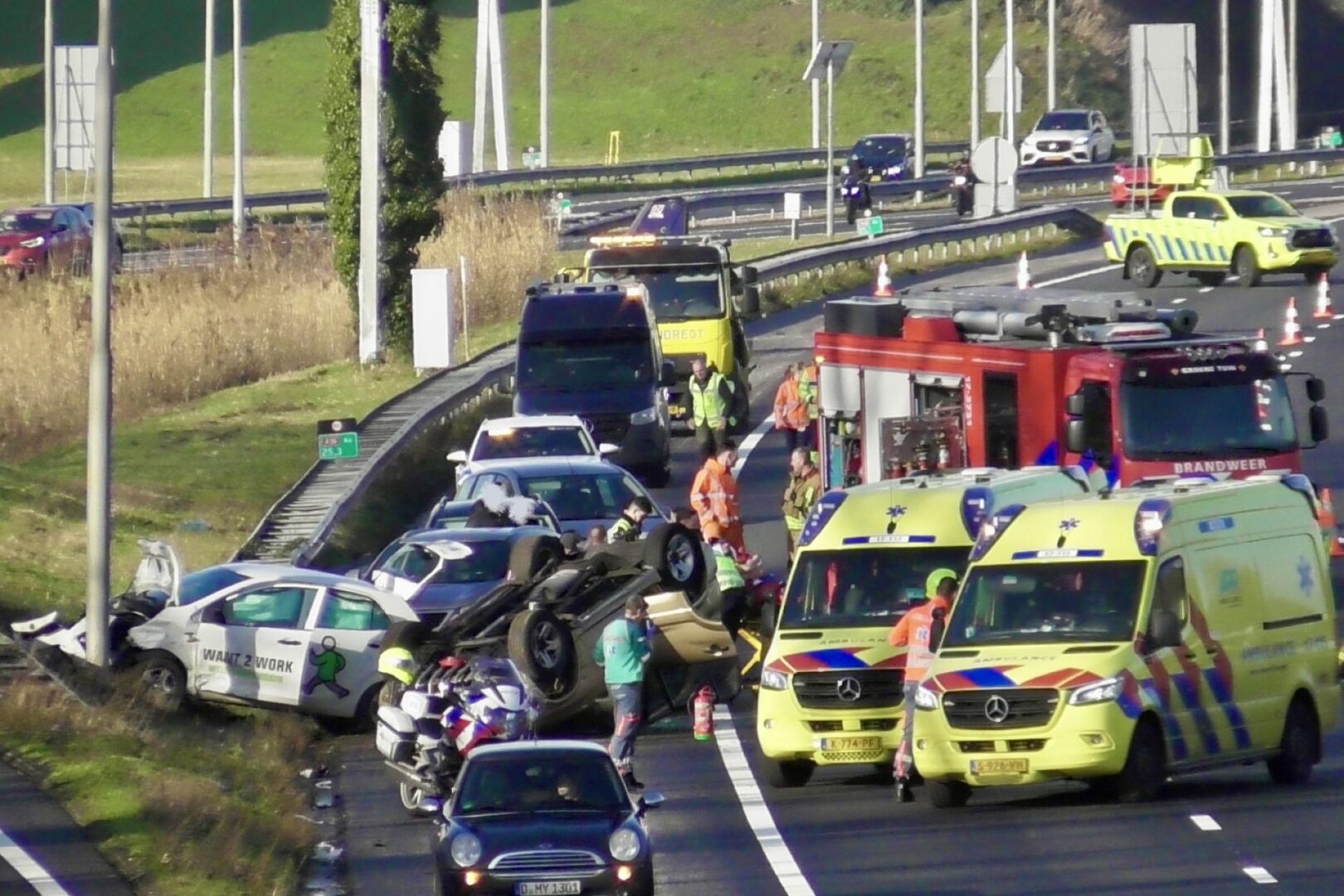 De snelweg was korte tijd volledig afgesloten zodat de traumahelikopter kon landen. Echter bleek hun inzet niet nodig.