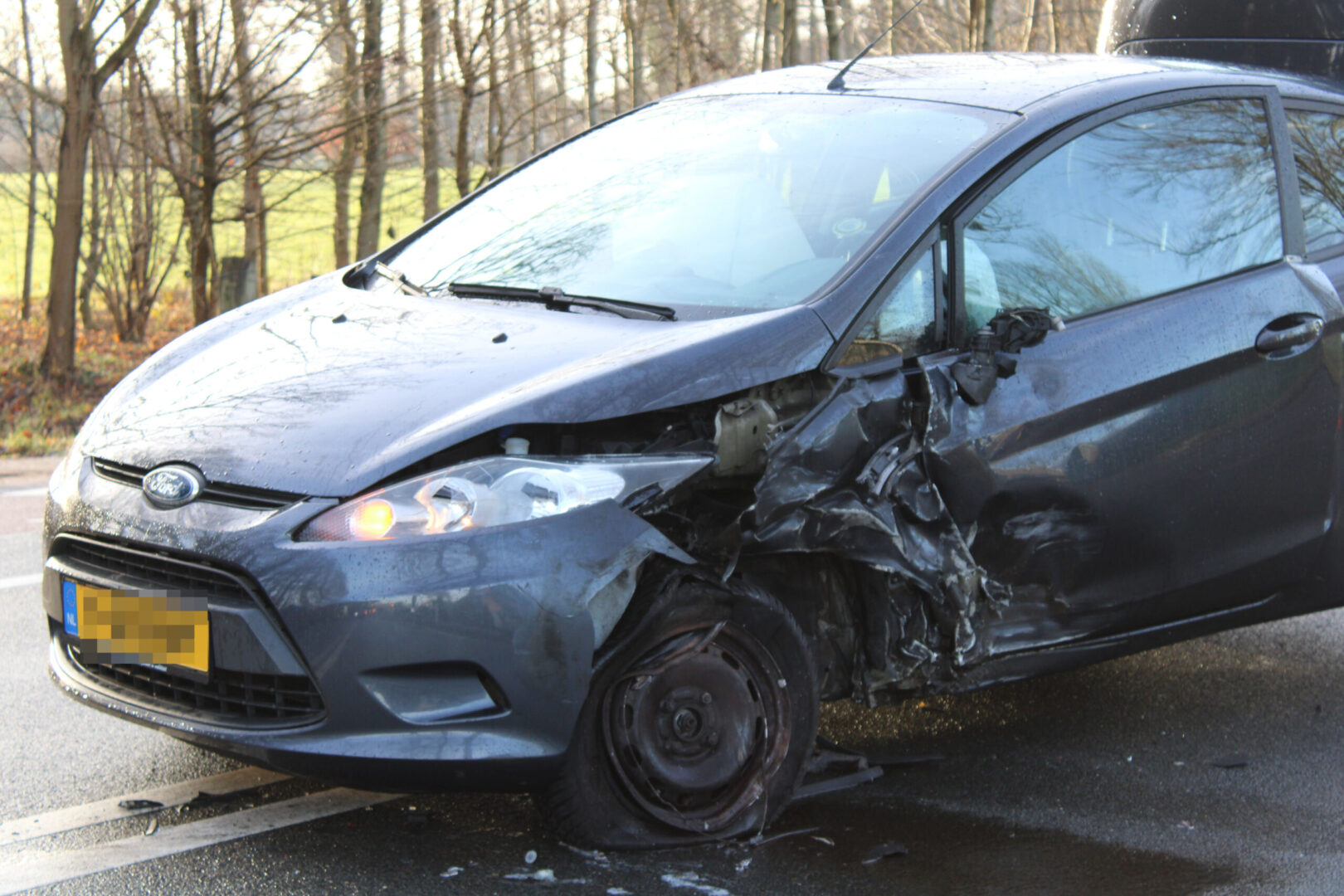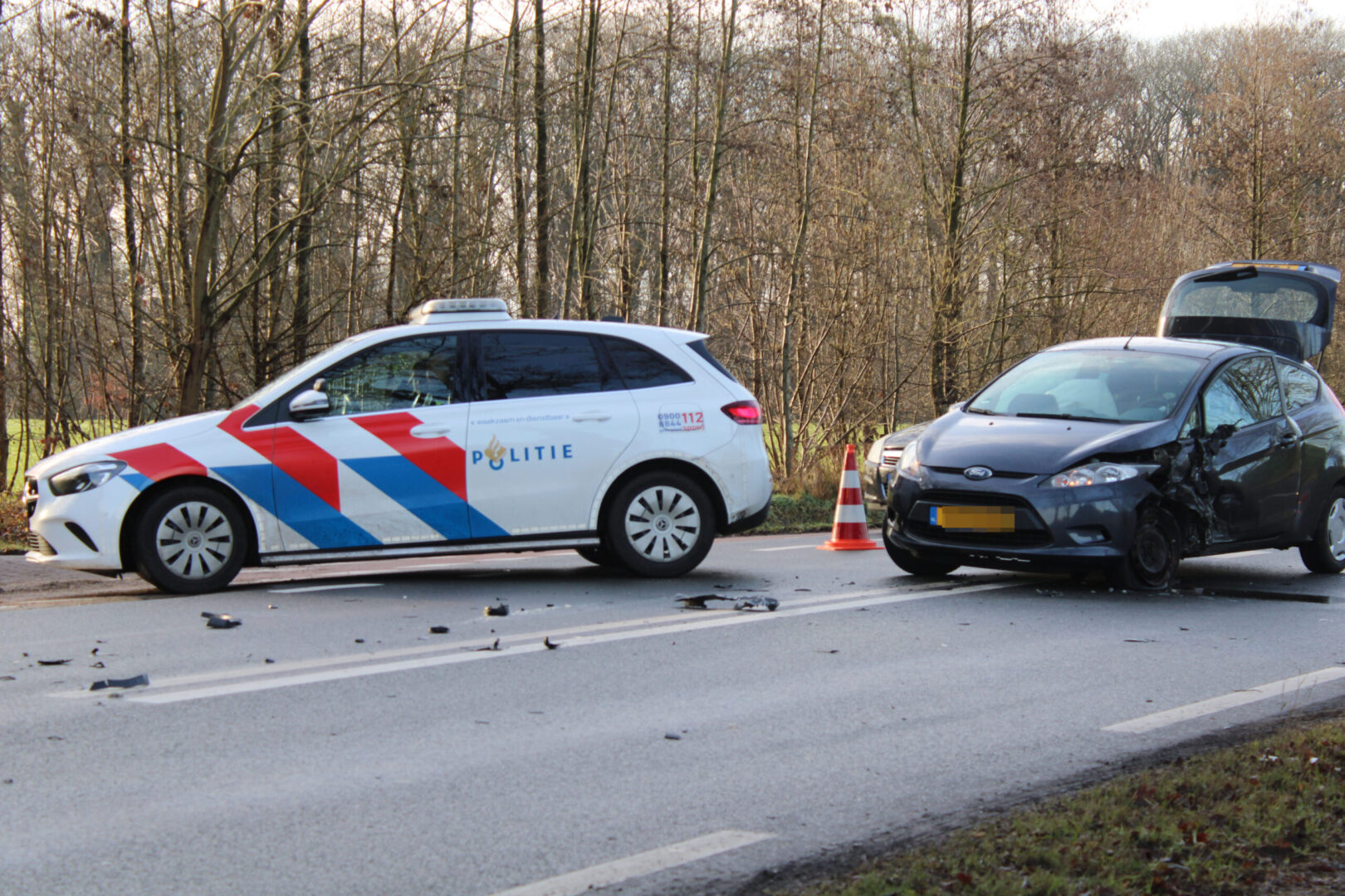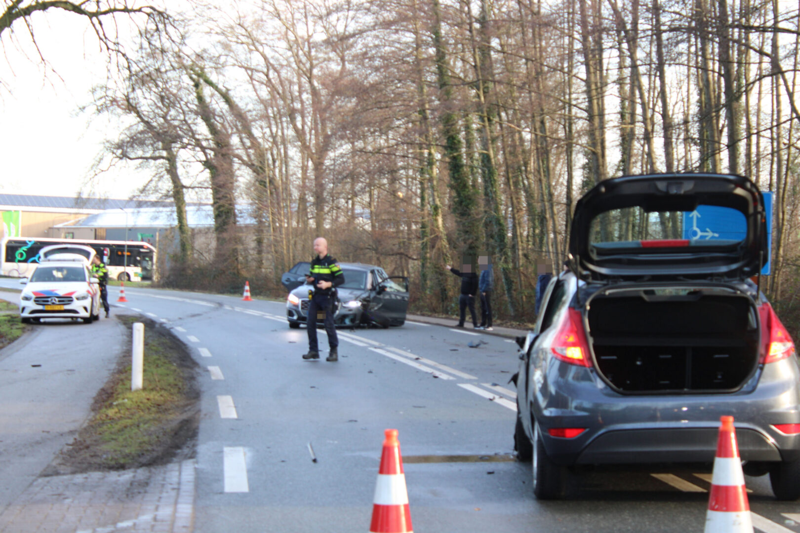 Twee personenauto’s zijn daar frontaal met elkaar in botsing gekomen. Beide voertuigen raakte zwaar beschadigd.
