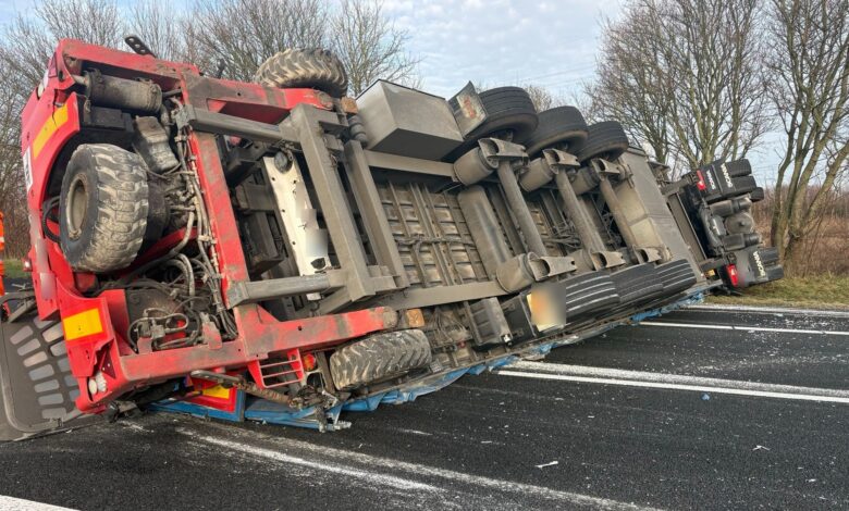 Zwaar ongeval op snelweg, vrachtwagen gekanteld